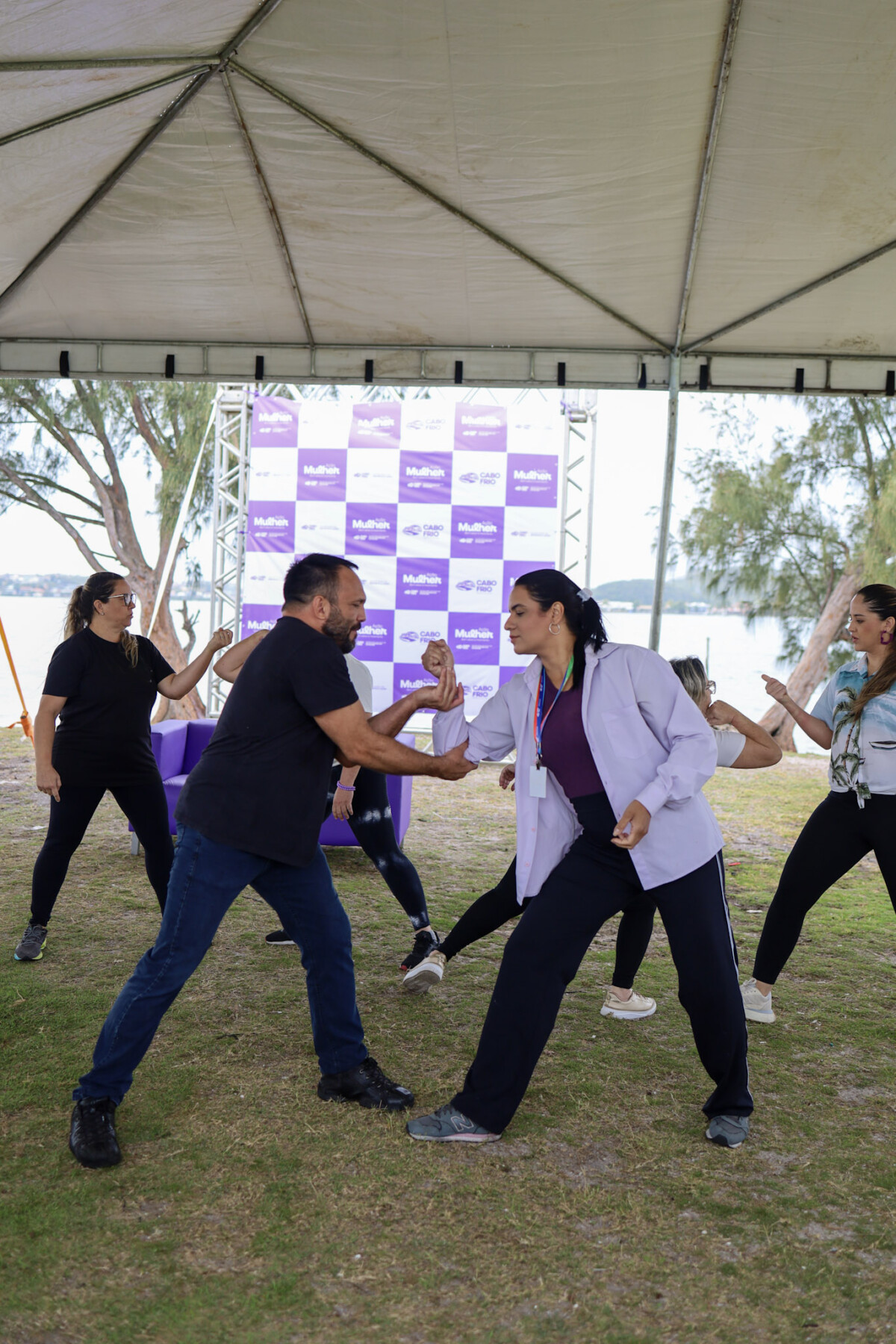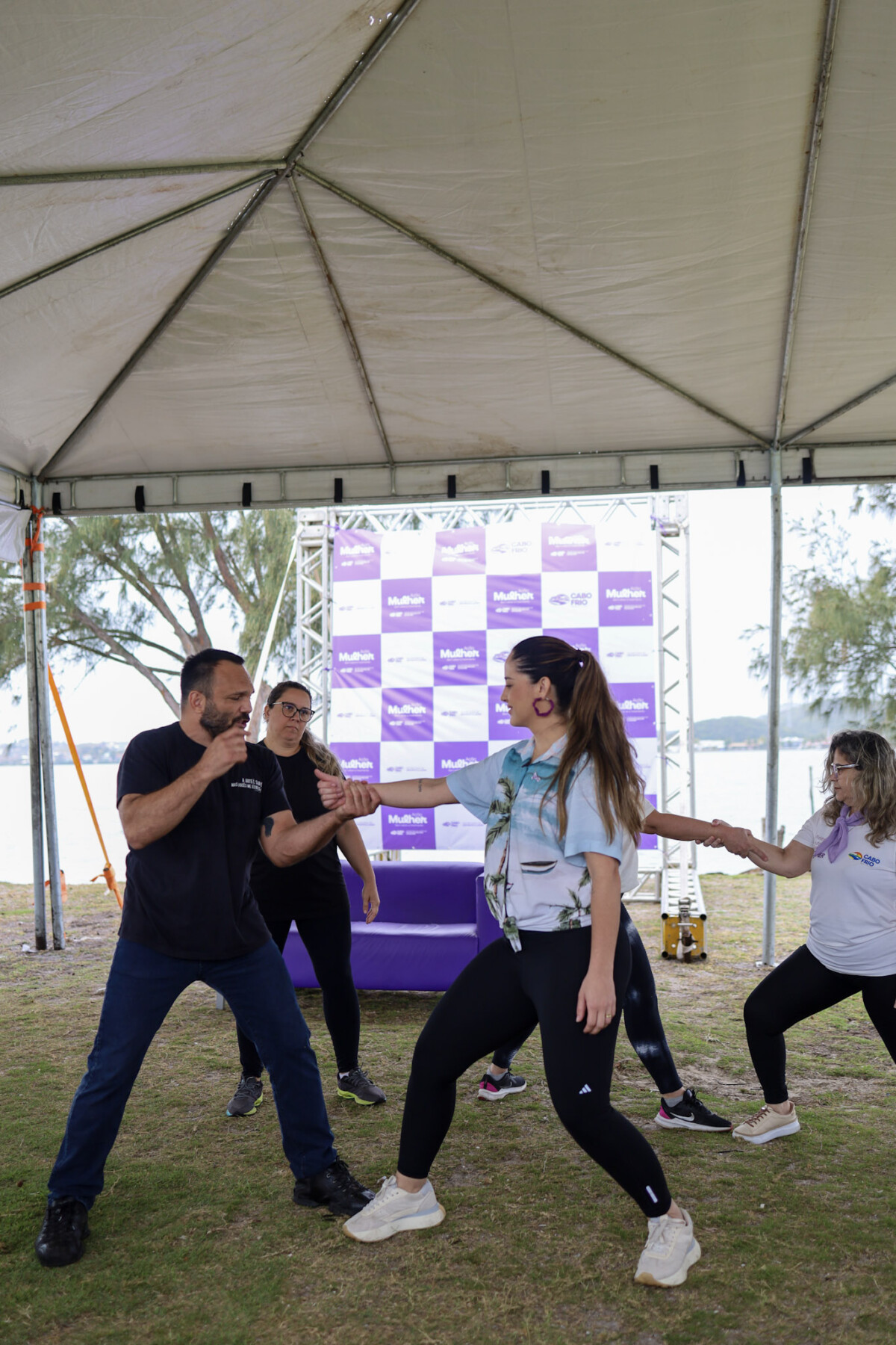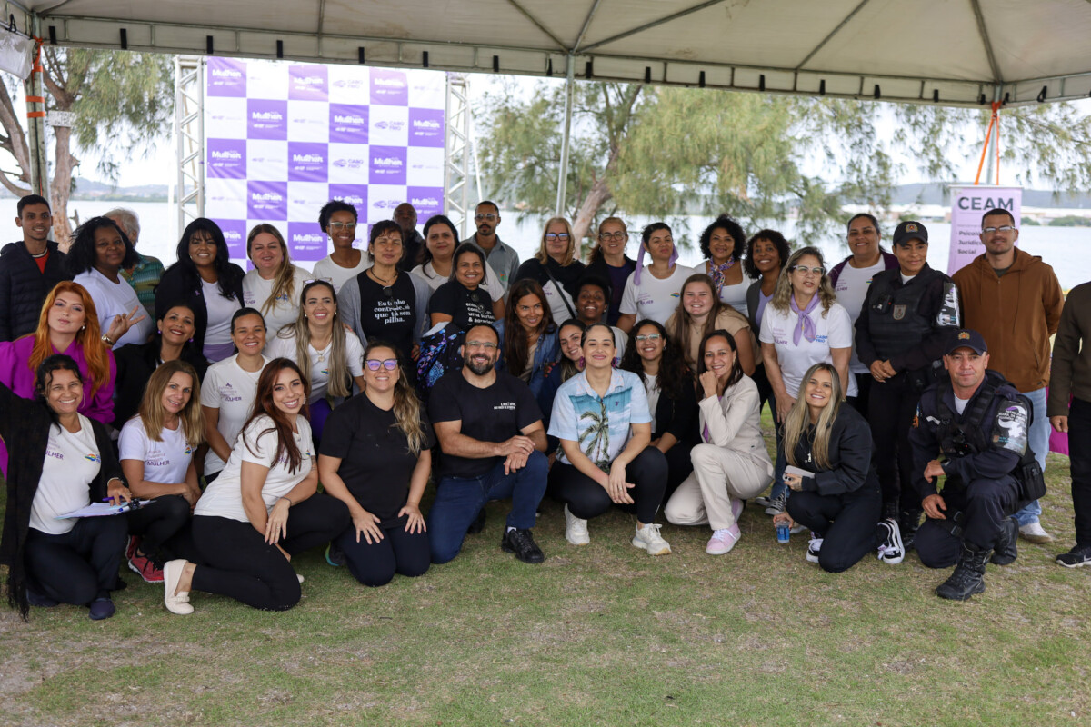 Mesmo com o tempo mais ameno e a chuva fina, mulheres marcaram presença no encerramento do Agosto Lilás, realizado na Lagoa das Palmeiras, em Cabo Frio, neste sábado (30). O evento marcou um mês intenso de atividades voltadas à conscientização e ao combate à violência contra a mulher.
