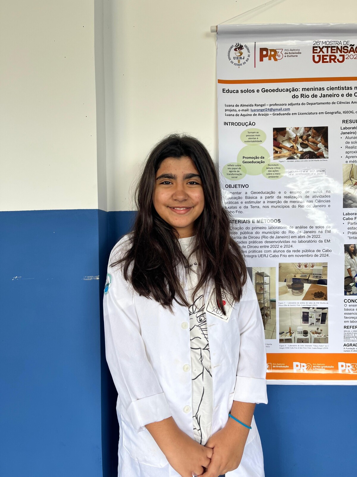 As estudantes cabo-frienses estiveram presentes no simpósio por meio do projeto “Educa solos e Geoeducação: meninas cientistas na educação básica dos municípios do Rio de Janeiro e de Cabo Frio”, desenvolvido na escola em parceria com a Uerj. A iniciativa é coordenada pela docente do Instituto de Geografia da universidade, campus Cabo Frio, Luana Rangel, e busca estimular o interesse de meninas pela formação em Geociências ainda na educação básica.
