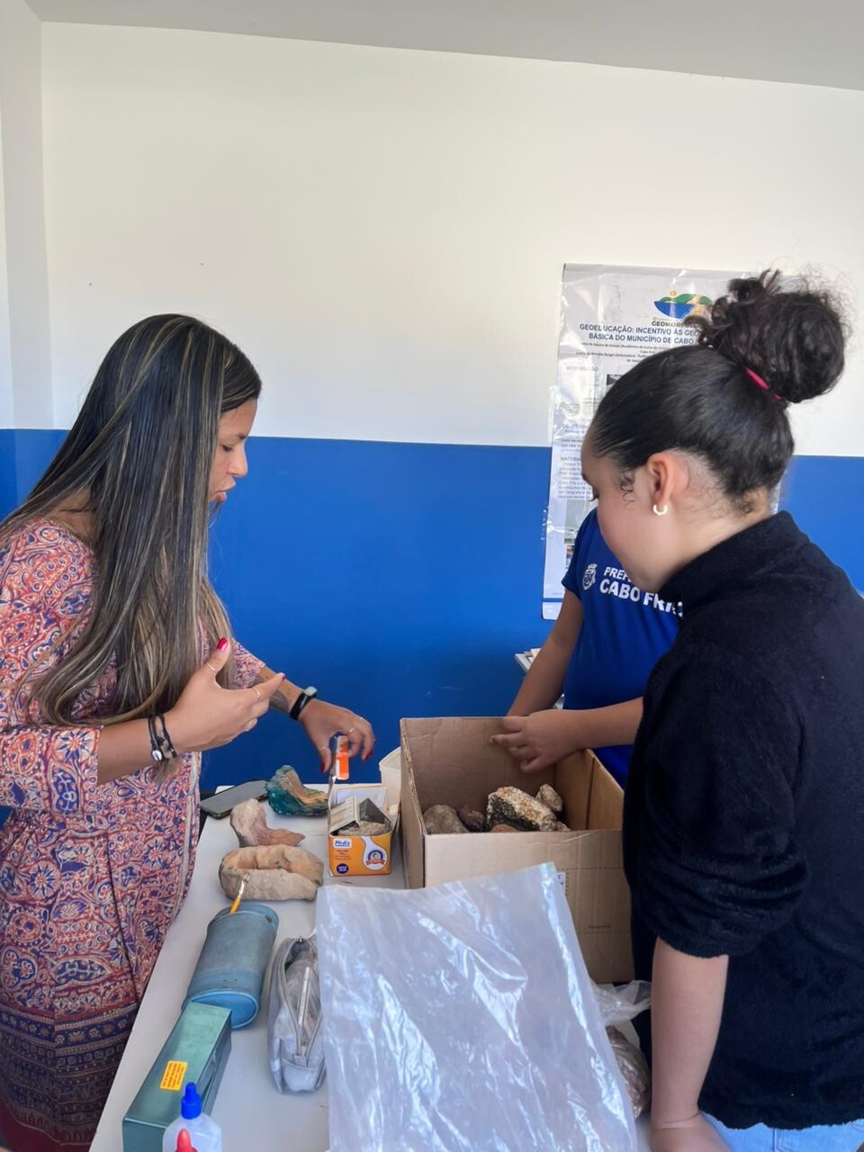 Desde 2025, o projeto “Educa solos e Geoeducação” vem promovendo diversas atividades práticas e educativas em Cabo Frio com a participação das alunas e alunos da Escola M. Alfredo Castro. Entre elas estão experimentos de análise de solos, produção de tinta a partir de solo como recurso didático e atividades de laboratório, além de ações de campo relacionadas à geodiversidade da região e à valorização das paisagens naturais de Cabo Frio, em parceria com a Prefeitura e outras instituições.