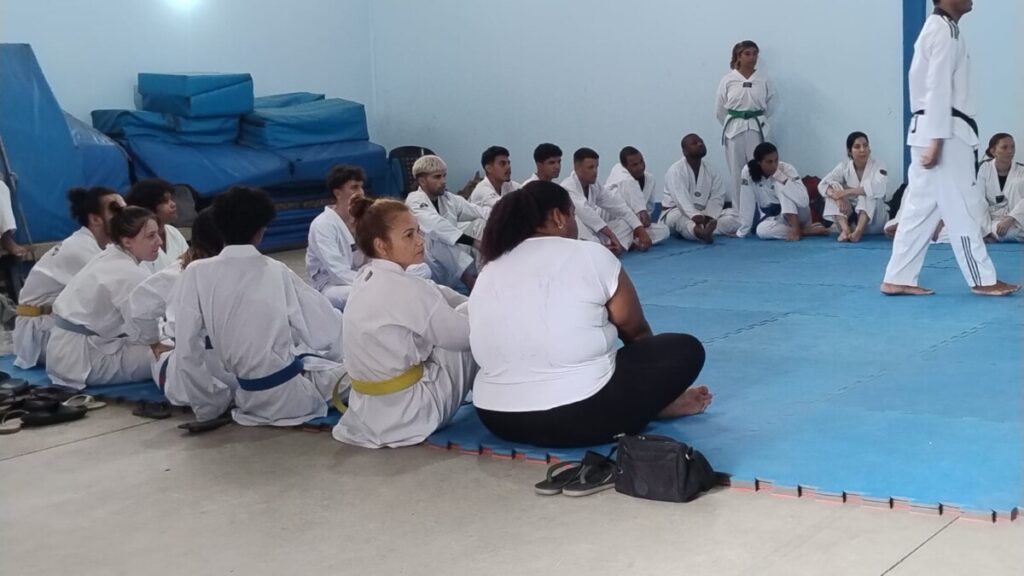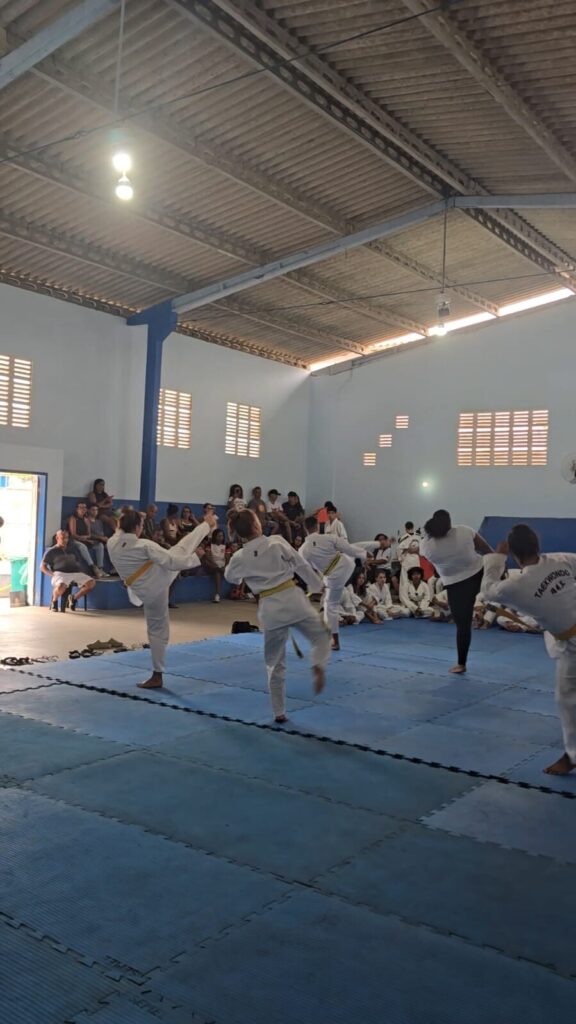 O Complexo Aracy Machado recebeu, no fim de semana, os exames de graduação em taekwondo, organizados pela Liga de Taekwondo da Região dos Lagos. A atividade contou com a participação de alunos e de uma professora do Projeto Cidadão do Futuro da Guarda Civil Municipal de Cabo Frio, integrando a programação ao lado de atletas de outras academias e projetos.
