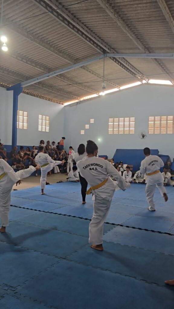 O taekwondo é uma arte marcial de origem coreana que trabalha disciplina, autocontrole, respeito e condicionamento físico, contribuindo para a formação esportiva e cidadã dos praticantes.
