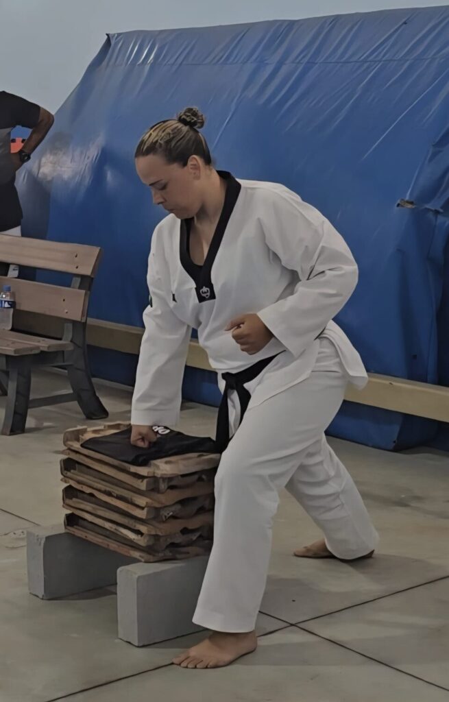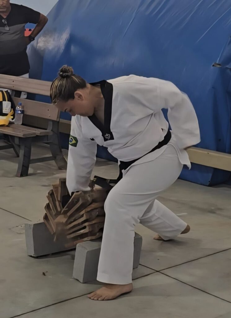 A inspetora-adjunta da Guarda Civil Municipal, Danielle Rabelo, coordenadora do Grupamento da Ronda Escolar e de Instrução, anteriormente faixa-preta 2º dan, também foi aprovada em seu exame para o 3º dan. “O exame avalia não só a técnica, mas também disciplina, respeito e dedicação, valores que os alunos levam para dentro e fora do dojô”, destacou a professora, que quebrou sete telhas com a mão de uma só vez.