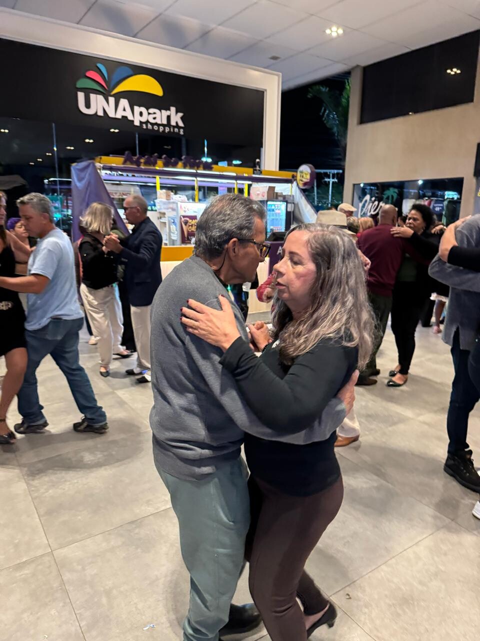 Música e dança de salão agitaram o espaço do Shopping Unapark, em Tamoios, no Baile da Melhor Idade. O evento é uma iniciativa da Prefeitura de Cabo Frio, por meio da Secretaria da Melhor Idade, realizado na noite deste sábado (16).