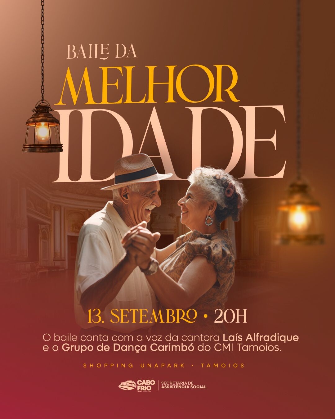 O baile da Melhor Idade volta neste sábado (13), no Shopping UnaPark, em Tamoios, a partir das 20h. A iniciativa é da Secretaria de Assistência Social, por meio da Superintendência Adjunta da Melhor Idade.