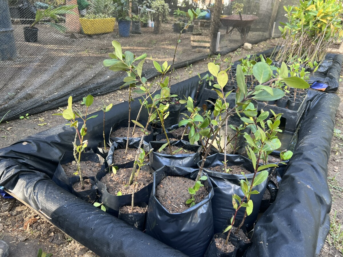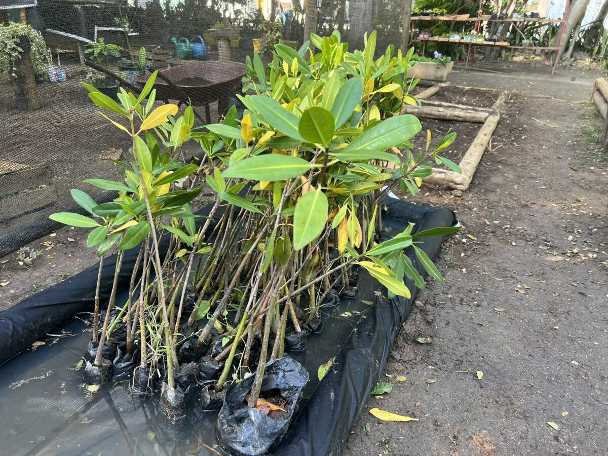 Outra novidade iniciada este ano foi a produção e aclimatização de mudas de mangue no Horto Municipal Antônio Ângelo Trindade Marques, destinadas à recuperação de áreas degradadas e preservação das zonas costeiras da cidade. No espaço, a Equipe Verde da Secretaria de Meio Ambiente instalou viveiros específicos aproveitando a reciclagem de lonas para criar áreas alagadas que reproduzem as condições naturais dos manguezais. No local são cultivadas espécies de mangue-vermelho (Rhizophora mangle), mangue-branco (Laguncularia racemosa), mangue-preto (Avicennia schaueriana) e mangue-de-botão (Conocarpus erectus), que formam a base dos manguezais da região.