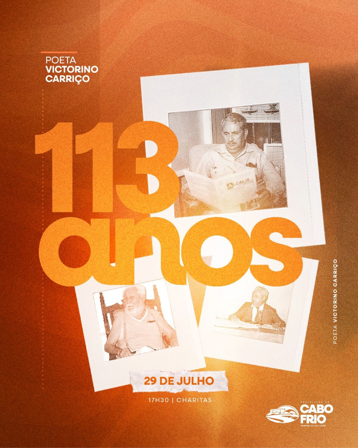 “A celebração desta terça será uma oportunidade para reviver a memória afetiva e o impacto cultural de Victorino Carriço, cuja obra continua presente na identidade cabo-friense. O Charitas, espaço simbólico da cultura local, será o cenário ideal para essa justa homenagem”, afirma o secretário de Cultura, Carlos Ernesto Lopes.