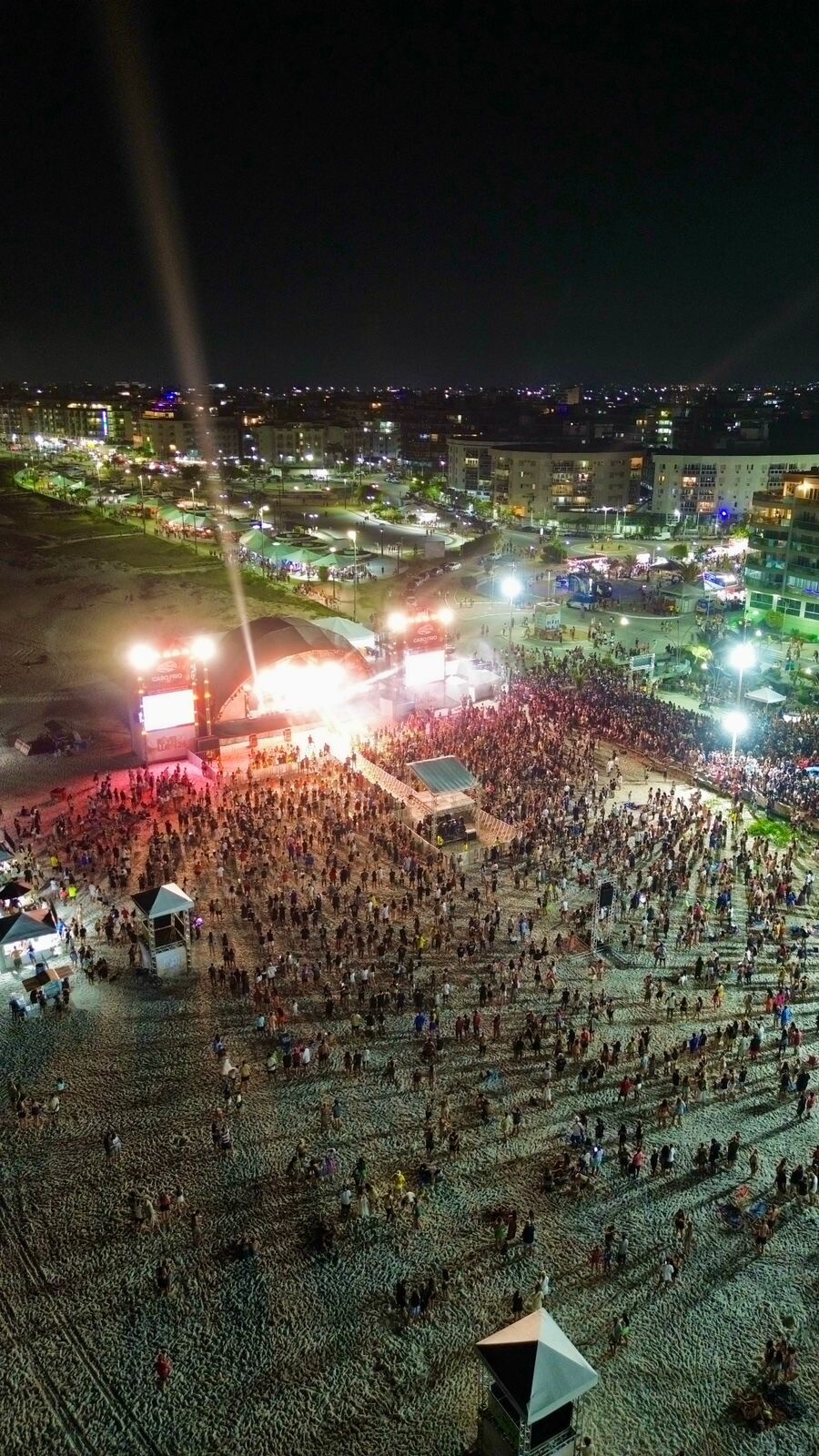 Um dos diferenciais do Réveillon 2026 em Cabo Frio é o sistema de telões instalados ao longo da orla da Praia do Forte, permitindo que o público acompanhe os shows mesmo fora da área central do palco, ampliando a experiência e oferecendo mais conforto para quem circula pela região.