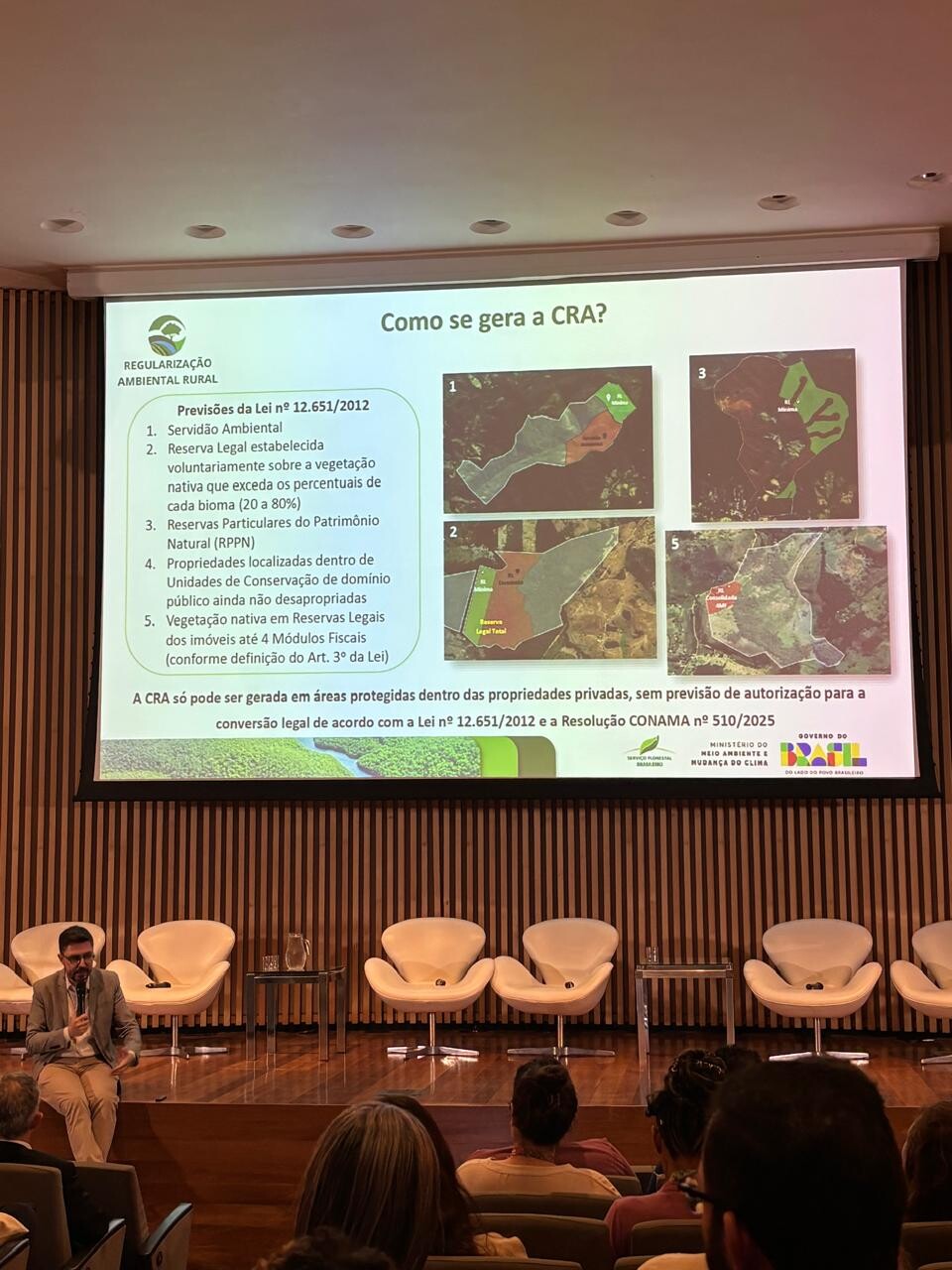 O evento incluiu painéis sobre avanços do CAR e novas ferramentas digitais, interoperabilidade em políticas públicas, pesquisa e assistência técnica aplicadas à regularização ambiental e Cotas de Reserva Ambiental (CRAs), incluindo o lançamento das primeiras CRAs do Brasil, etapa considerada histórica para o aprimoramento dos instrumentos de compensação ambiental.