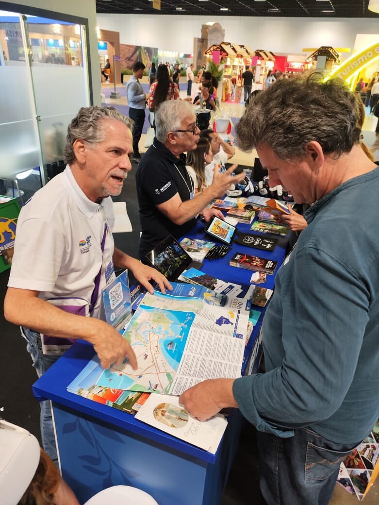 Além da equipe da Prefeitura, o empresário do setor náutico, Emerson Paiva, também esteve no stand colaborando na divulgação e na apresentação do roteiro náutico histórico.