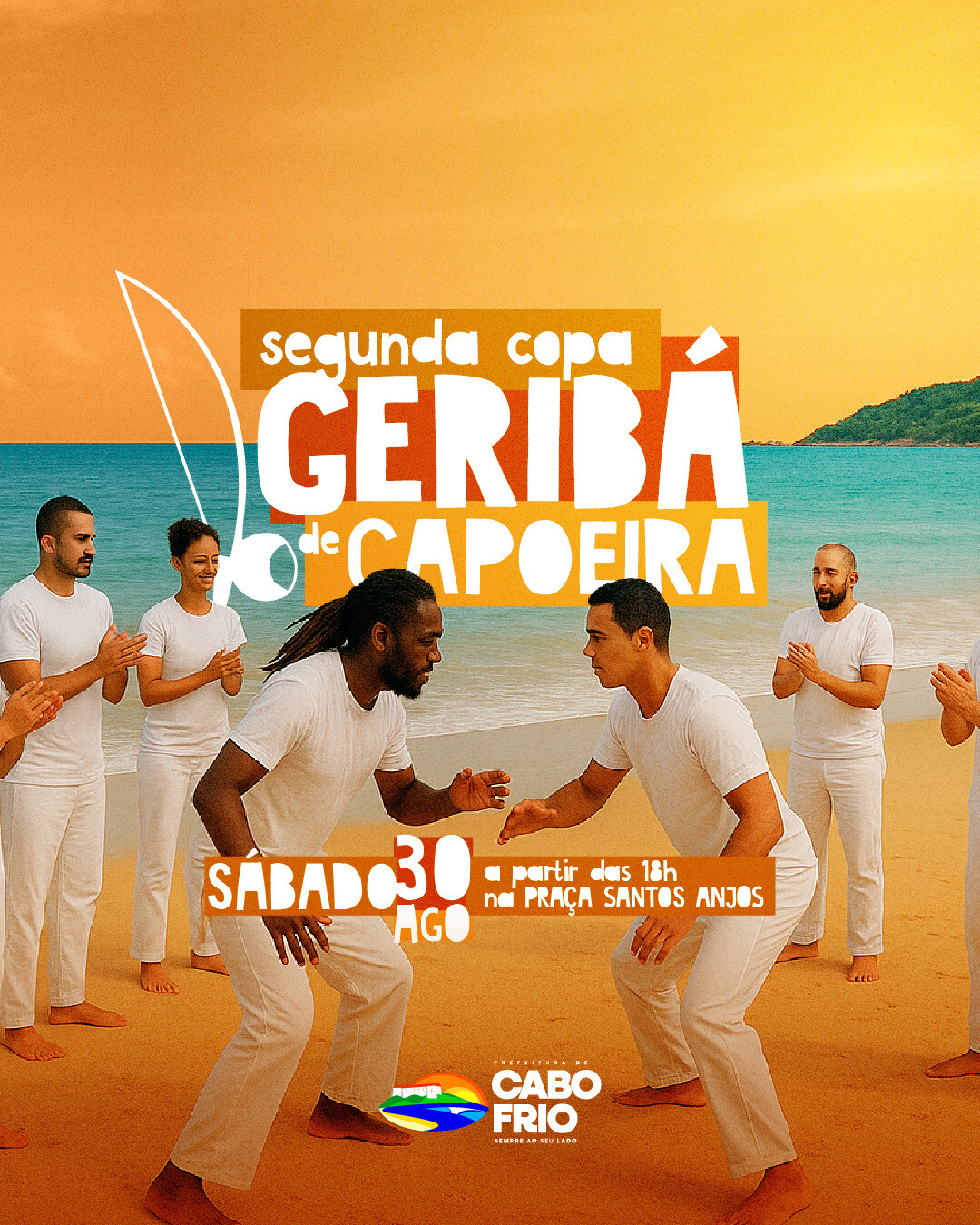 Neste sábado (30), Cabo Frio será a sede da Segunda Copa Geribá de Capoeira, que acontecerá na Praça Santos Anjos, na Praia do Siqueira. O evento tem como objetivo promover a capoeira como manifestação cultural, esporte e ferramenta de inclusão social, fortalecendo a identidade cultural e a integração da comunidade.