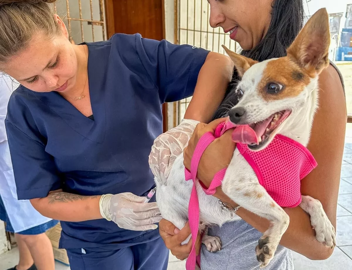 Mutirão de castrações gratuitas atrai moradores com pets à Praça de São Cristóvão, em Cabo Frio