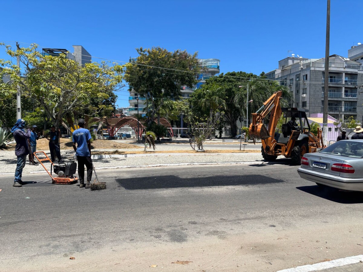 Revitalização na área central de Cabo Frio segue a todo vapor com novas etapas de fresagem e troca de asfalto nas principais vias