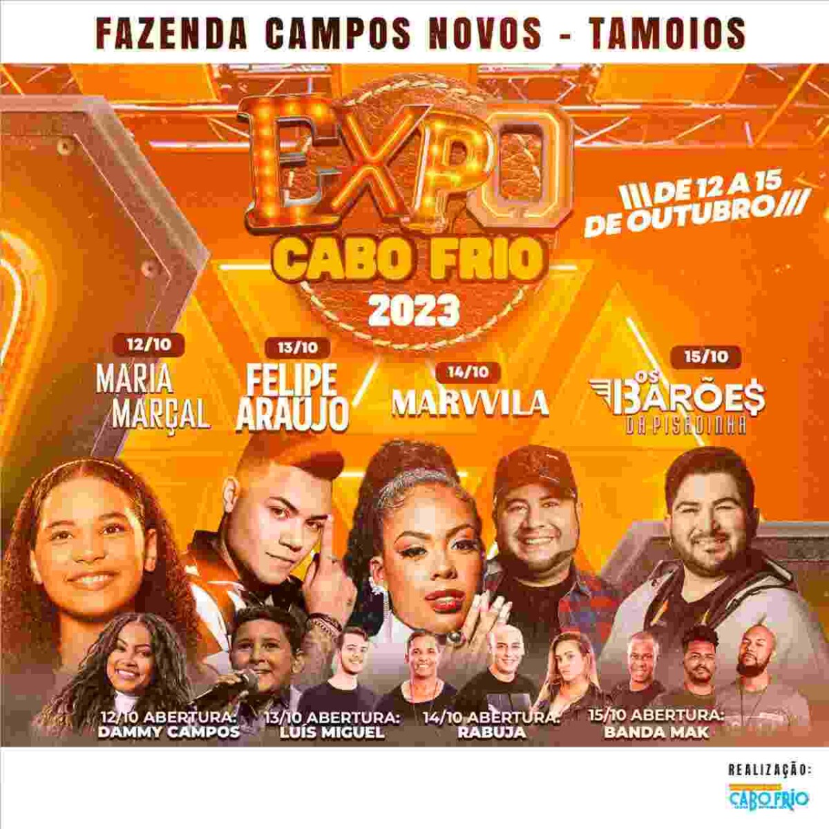 Expo Cabo Frio tem shows de Maria Marçal, Felipe Araújo, Marvvila e Barões da Pisadinha