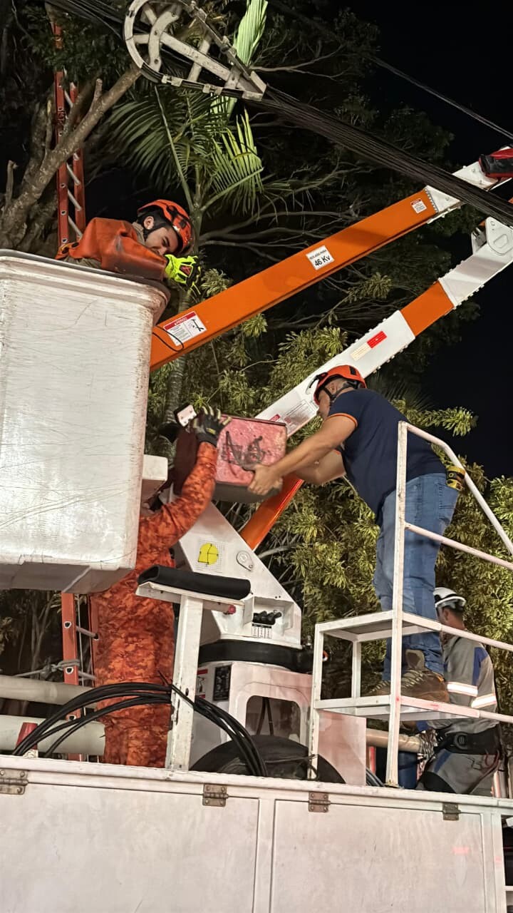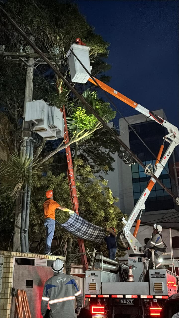 Outro fator que exigiu cautela foi a proximidade da rede de alta tensão. Para garantir a segurança da operação, a equipe precisou desligar temporariamente a energia da rua. Antes da manobra, os agentes confirmaram junto aos hospitais da região o funcionamento adequado dos geradores de energia das unidades, assegurando que nenhum atendimento fosse comprometido.