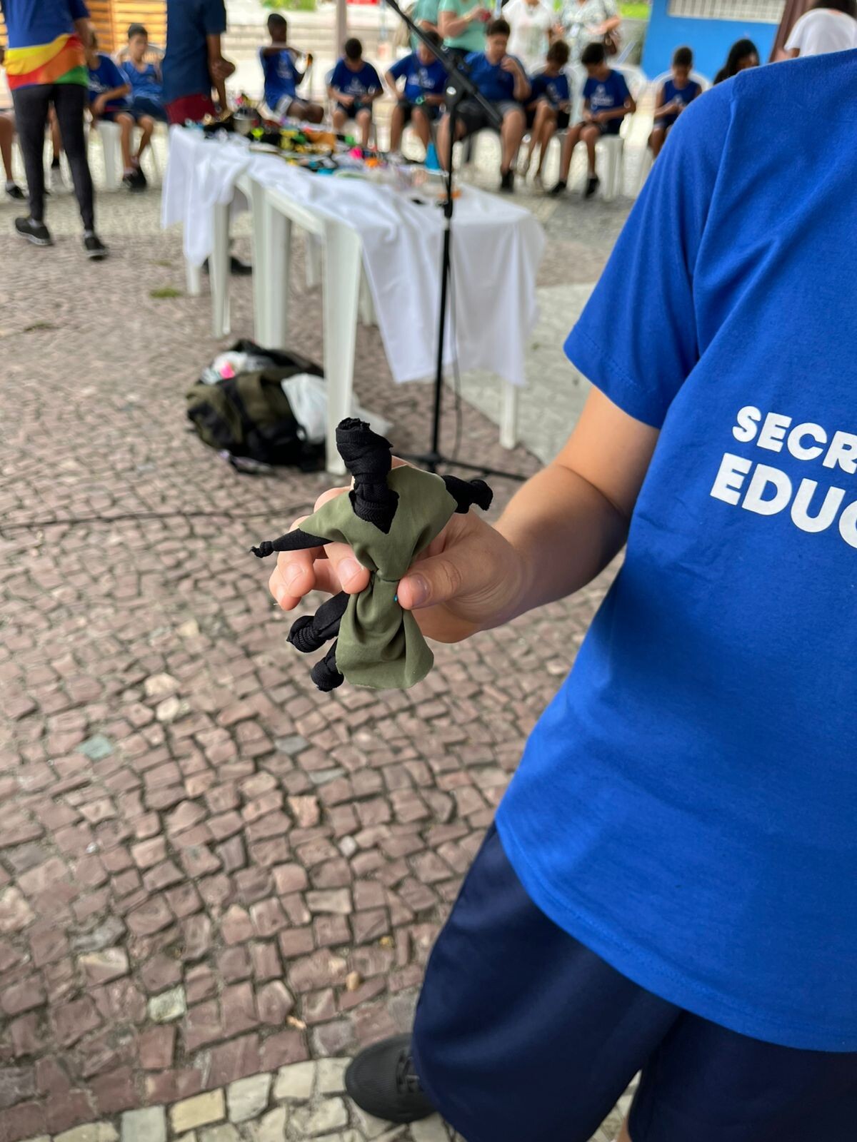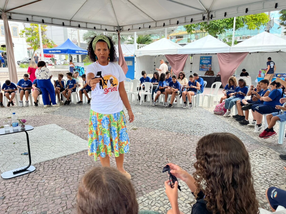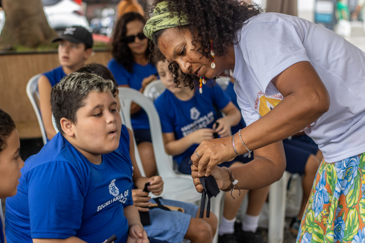 A programação também se estende para além dos espaços escolares. No período da tarde, estudantes da rede municipal acompanharão as atividades culturais realizadas na Praça Porto Rocha, no Centro da cidade. Nesta segunda-feira (23), alunos da Escola Municipal Antônio da Cunha Azevedo participaram da oficina de confecção da boneca Abayomi, que incluiu explicações sobre a origem da tradição e o passo a passo para a produção artesanal.