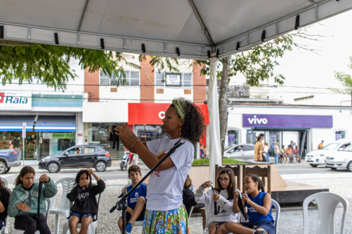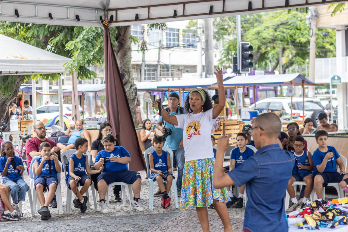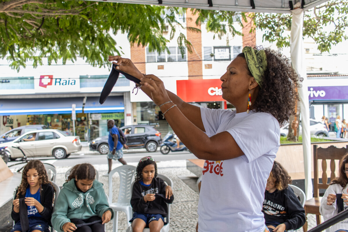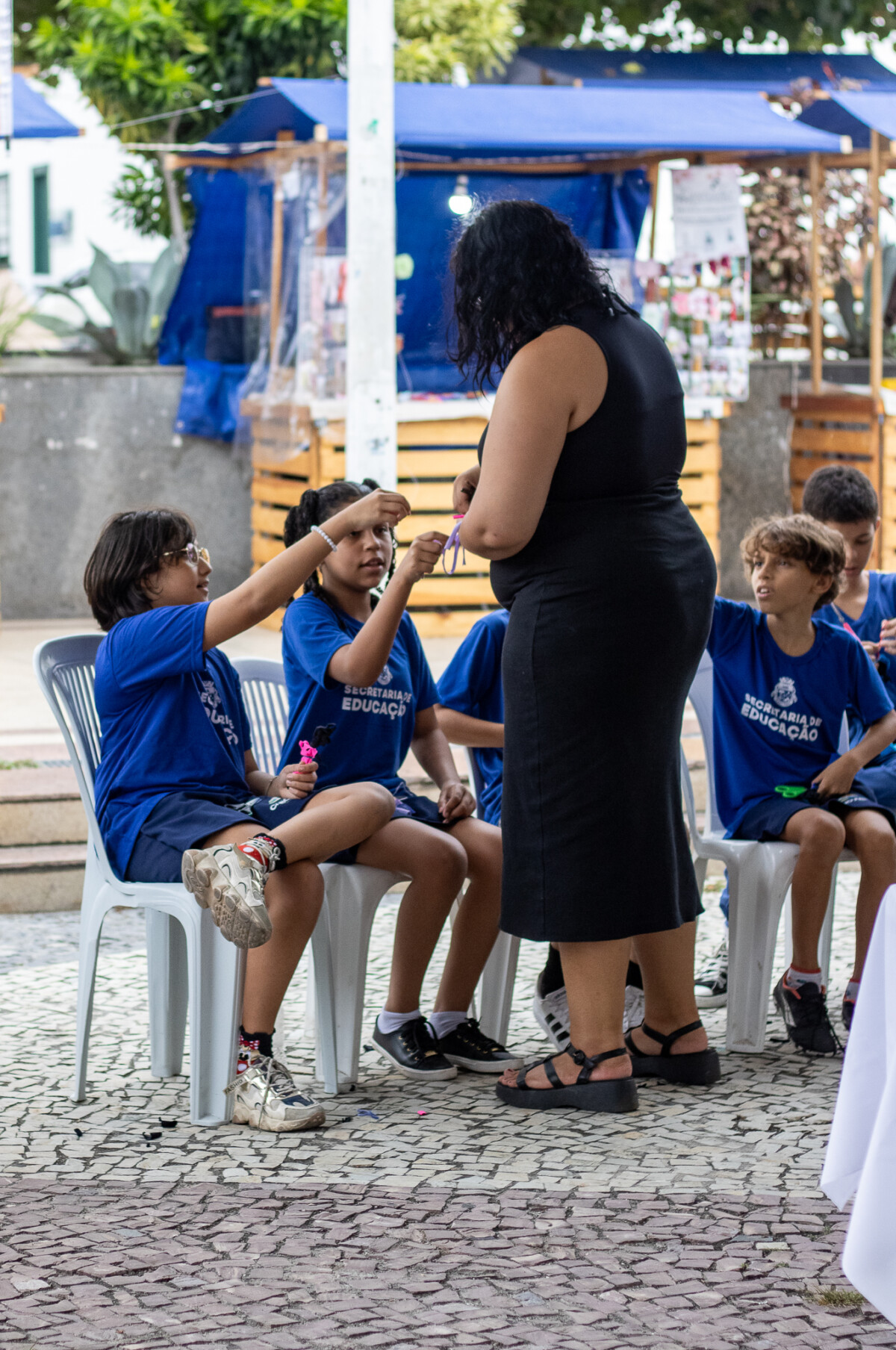 A programação também se estende para além dos espaços escolares. No período da tarde, estudantes da rede municipal acompanharão as atividades culturais realizadas na Praça Porto Rocha, no Centro da cidade. Nesta segunda-feira (23), alunos da Escola Municipal Antônio da Cunha Azevedo participaram da oficina de confecção da boneca Abayomi, que incluiu explicações sobre a origem da tradição e o passo a passo para a produção artesanal.