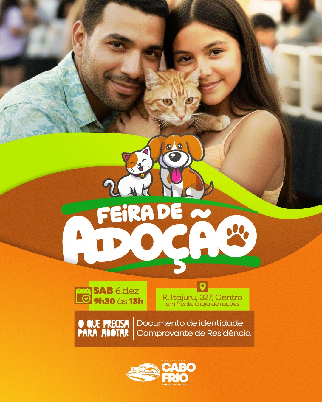 A Superintendência de Proteção Animal de Cabo Frio promove, neste sábado (6), mais uma edição da Feira de Adoção Animal. O evento será realizado na Rua Itajuru, nº 327, no Centro, das 9h30 às 13h, com o objetivo de encontrar lares responsáveis para cães e gatos acolhidos e acompanhados pelo Canil Municipal.