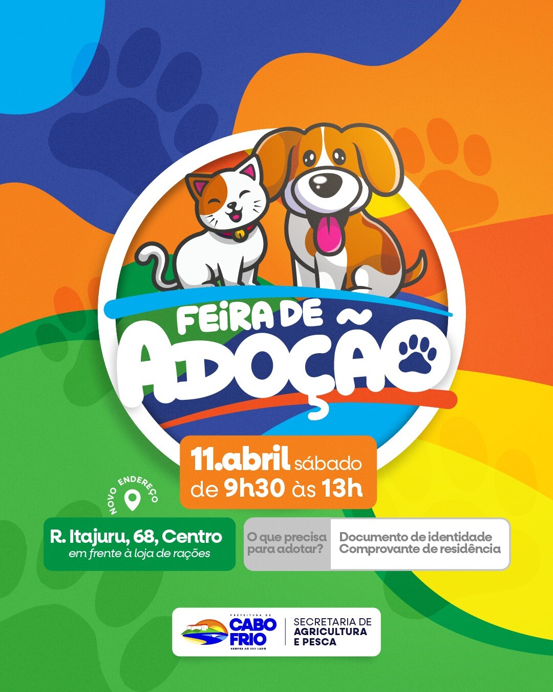 A Prefeitura de Cabo Frio, por meio da Superintendência de Proteção Animal, realiza neste sábado (11), das 9h30 às 13h, mais uma edição da Feira de Adoção Animal. A ação será na Rua Itajuru, nº 68, no Centro, com o objetivo de incentivar a adoção consciente de cães e gatos acolhidos pelo Canil Municipal.