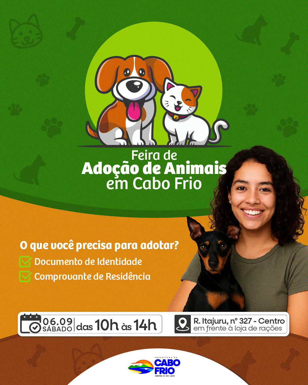 A Prefeitura de Cabo Frio, por meio da Superintendência de Proteção Animal da Secretaria de Agricultura e Pesca, realiza neste sábado (6), das 10h às 14h, mais uma edição da Feira de Adoção de Animais. A ação acontecerá na Rua Itajuru, nº 327, no Centro da cidade, com o objetivo de encontrar famílias responsáveis dispostas a adotar cães e gatos atualmente acolhidos no Canil Municipal.