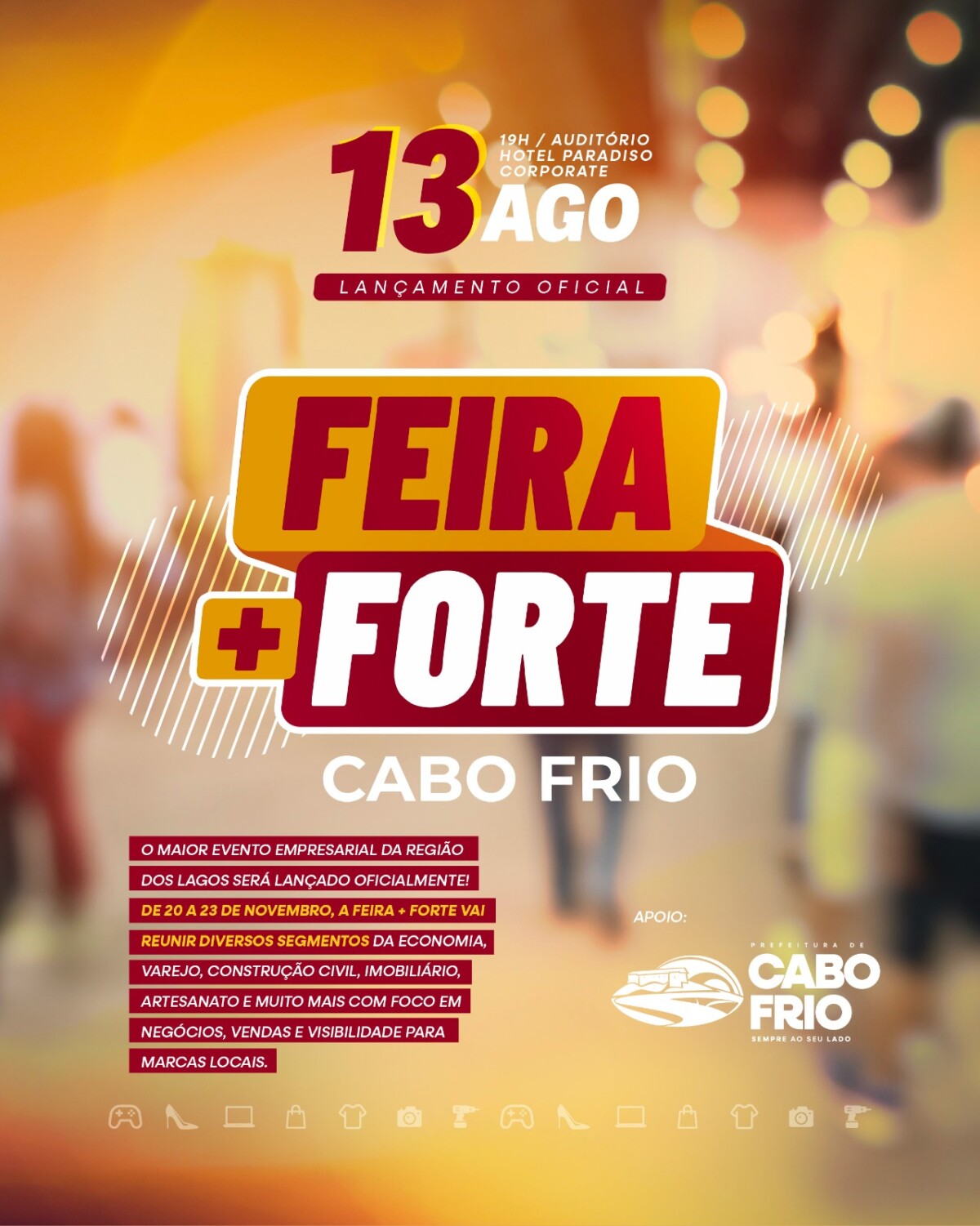 A “Feira + Forte 2025”, que será realizada entre 20 e 23 de novembro, conta com o apoio da Prefeitura de Cabo Frio, por meio da Secretaria Municipal de Desenvolvimento Econômico. No evento desta quarta, haverá a apresentação do projeto. Também serão anunciadas novidades da edição 2025 e a abertura da venda de estandes.