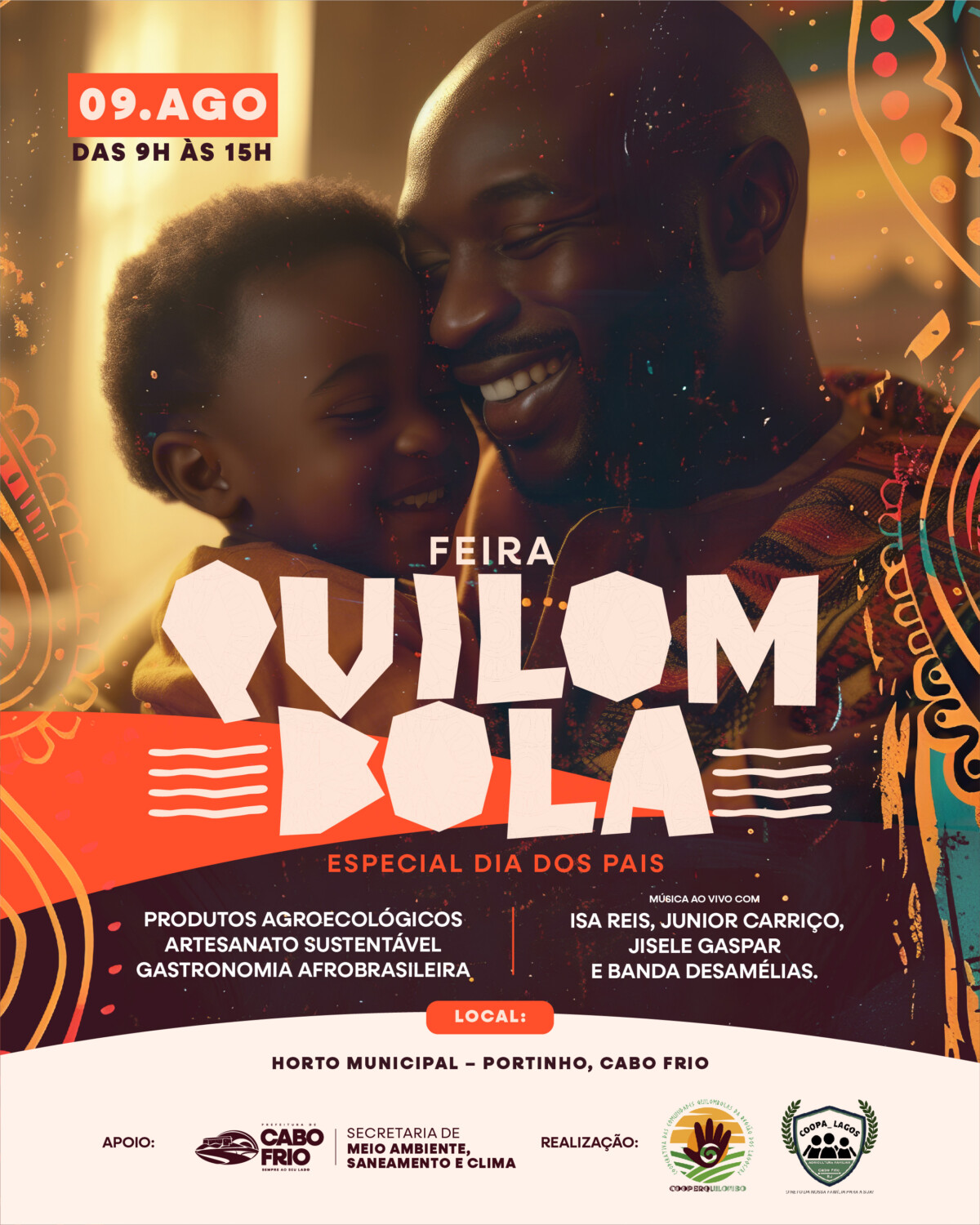 A cidade de Cabo Frio receberá mais uma edição da tradicional Feira Quilombola, que desta vez será em homenagem ao Dia dos Pais. O evento será realizado no sábado (9), das 9h às 15h, no Horto Municipal Antônio Ângelo, no bairro Portinho.