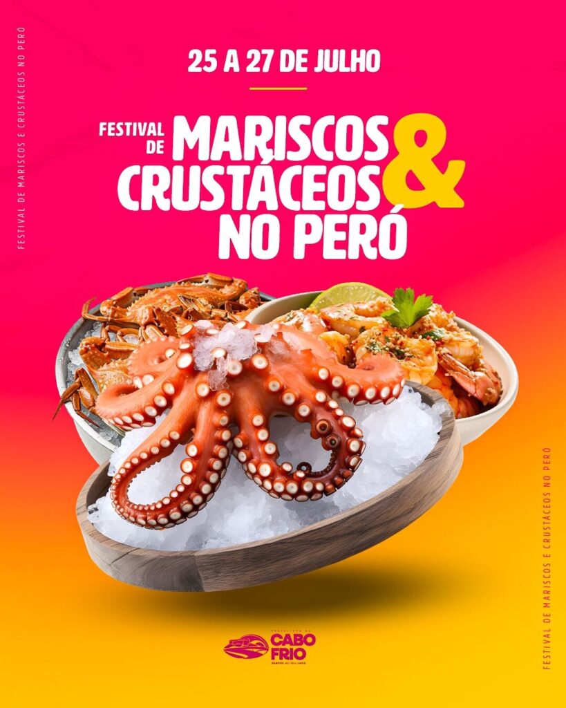 O Festival do Marisco e Crustáceos do Peró acontece das 18h à meia-noite, na sexta (25); e das 12h à meia-noite, no sábado (26) e no domingo (27). O evento vai contar com o apoio estrutural, operacional e logístico da Prefeitura de Cabo Frio.