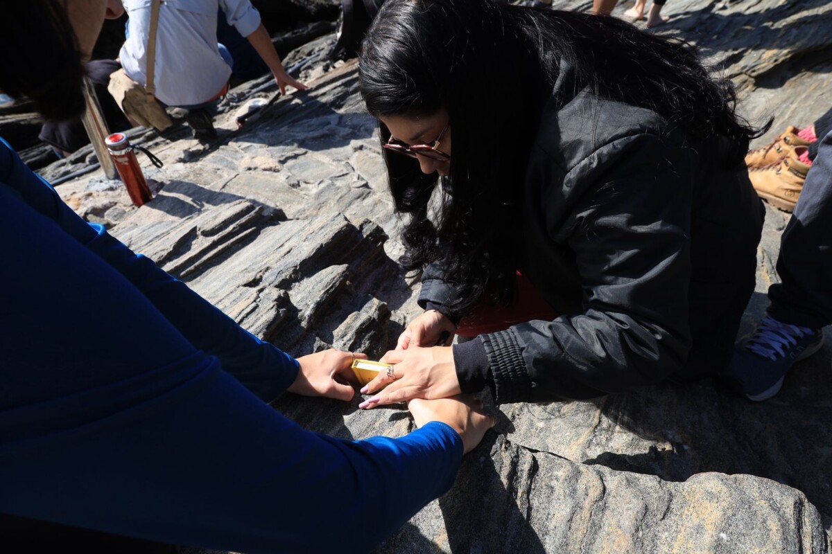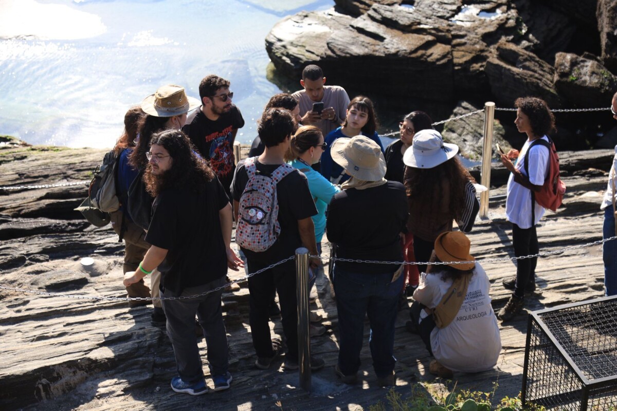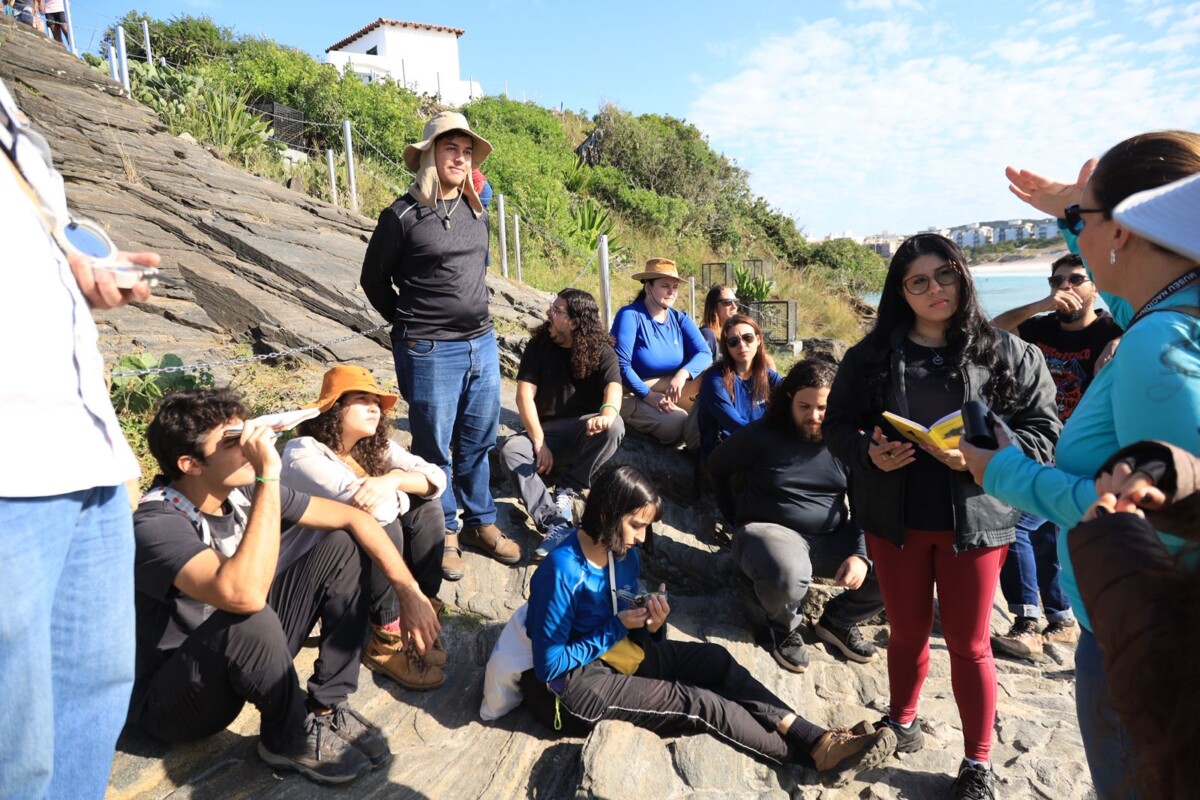 “É super importante que o pessoal dos cursos esteja presente, principalmente do mestrado em Patrimônio Geológico, para essa aula in loco. Nós temos alunos de diversas áreas, não apenas da geologia. Para muitos deles esse é o primeiro contato com a geologia de forma prática. Primeiro eles tiveram um semestre de aulas discutindo os processos e agora vieram aplicar tudo que aprenderam em sala de aula”, disse Eliane Guedes, professora do Museu Nacional da UFRJ.