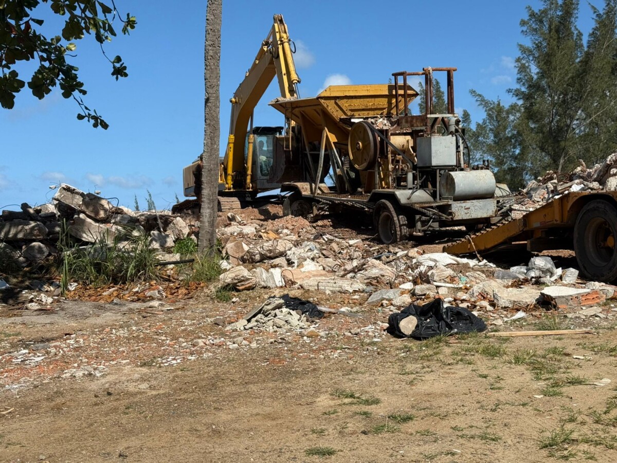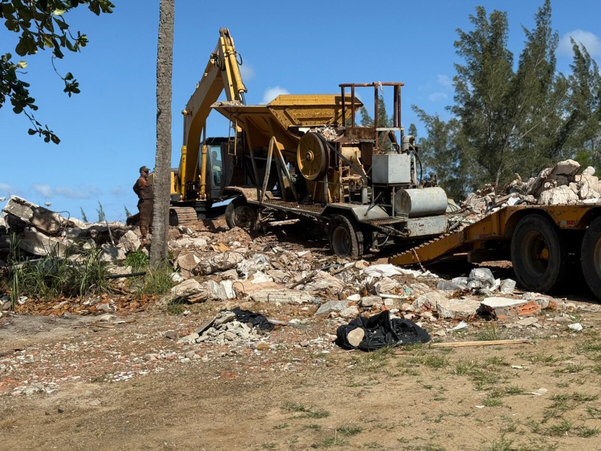 Uma operação de limpeza e retirada de entulho está em andamento nas ruínas do antigo Hotel Acapulco, localizado na Praia das Dunas, no bairro Braga. A ação, iniciada em 13 de junho, é coordenada pela Prefeitura de Cabo Frio, por meio da Comsercaf, e mobiliza equipes e maquinário pesado para a remoção do material acumulado no terreno onde funcionava o prédio, abandonado há mais de uma década.