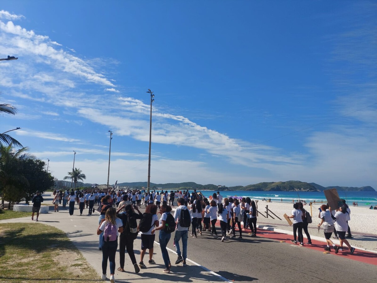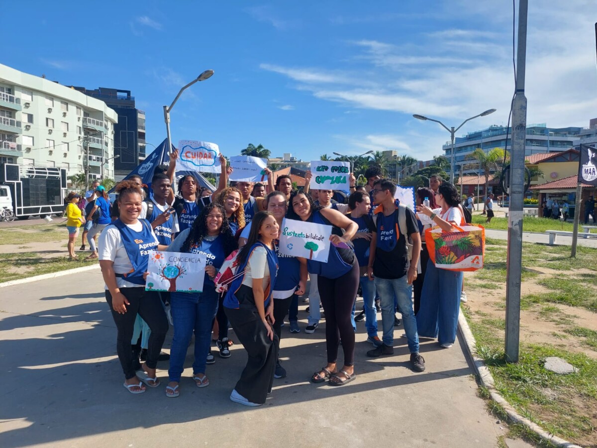 A manhã desta sexta-feira (6) foi marcada por uma grande mobilização em defesa dos oceanos, na Praia do Forte, em Cabo Frio. Estudantes, educadores, ambientalistas e representantes da sociedade civil se reuniram na Praça da Cidadania em uma programação especial voltada à conscientização ambiental e à preservação da vida marinha.