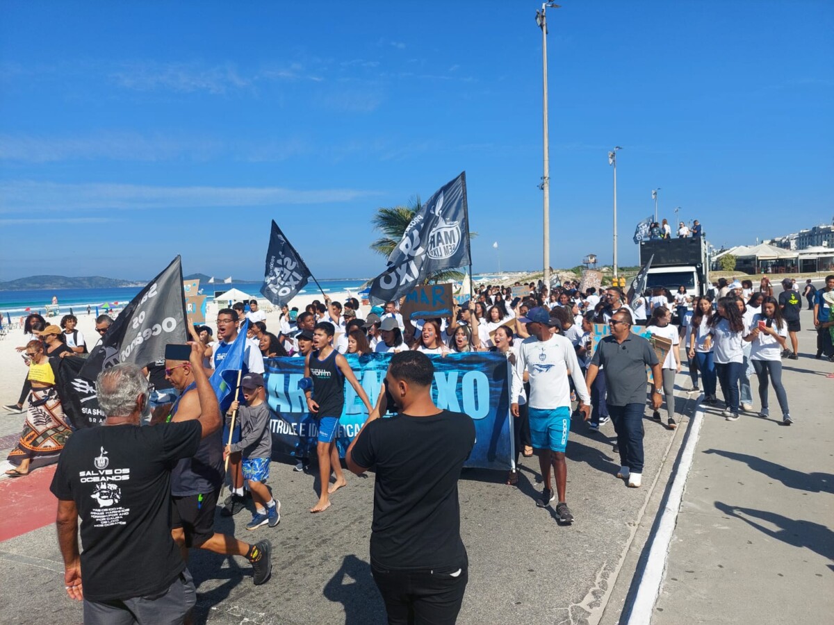Encerrando a manhã, a ONG Mar Sem Lixo promoveu a Marcha pelos Oceanos — uma caminhada simbólica e pacífica pela Orla da Praia do Forte, levando às ruas mensagens de respeito ao mar e de incentivo à redução da poluição costeira. A ação contou com o apoio da Guarda Civil Municipal, que atuou na organização do trânsito durante o percurso.