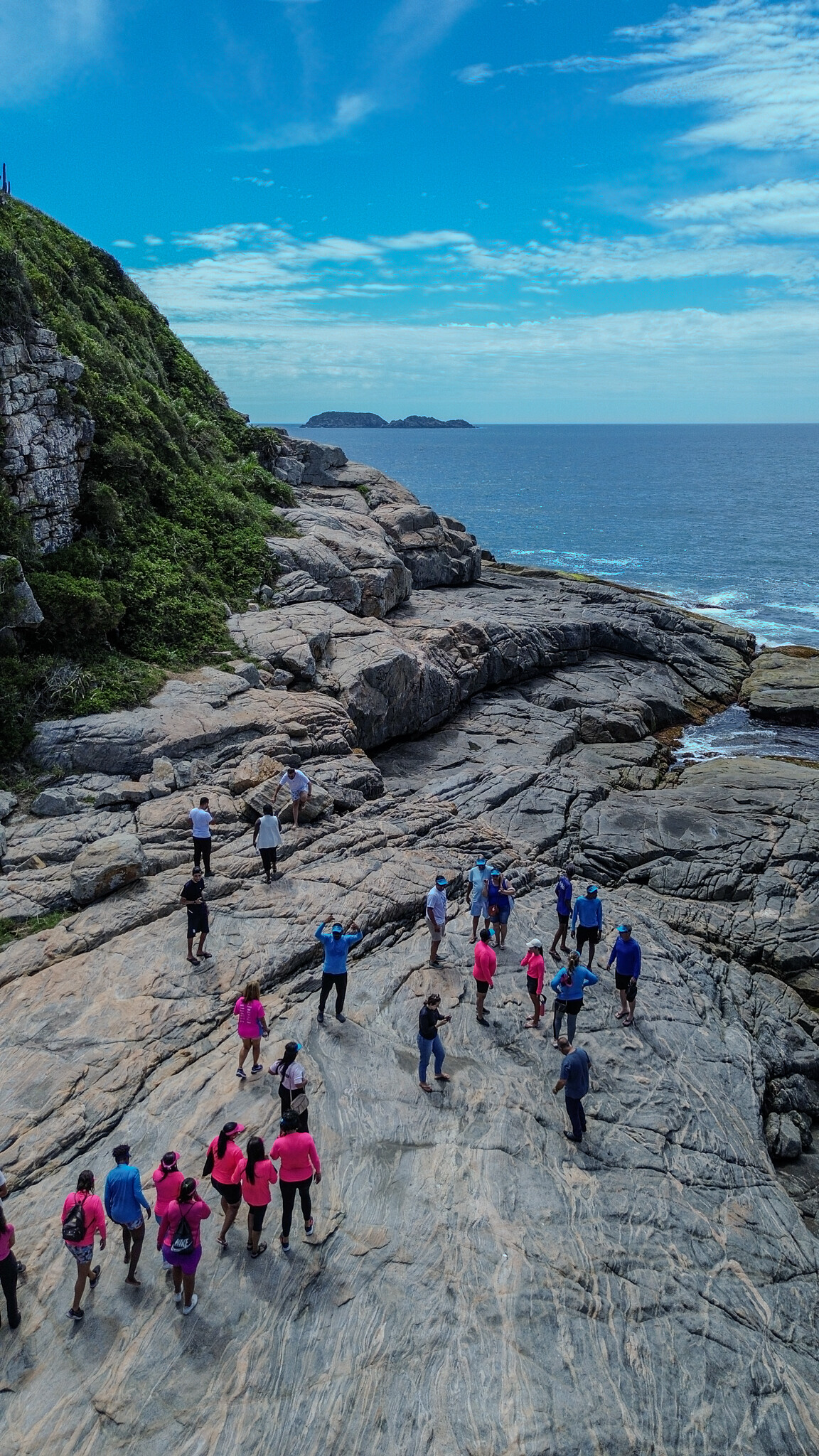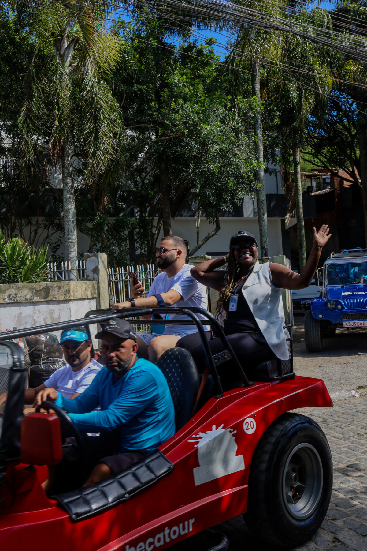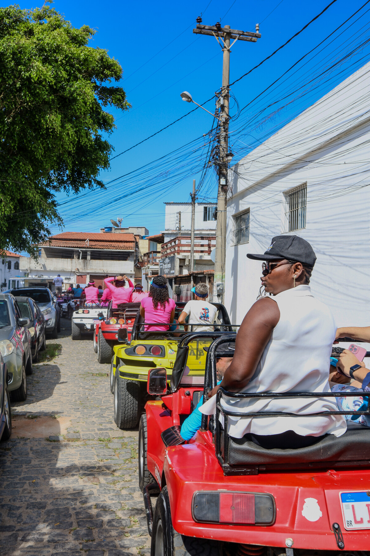 A iniciativa levou os participantes, entre eles, homens e mulheres ex-pacientes e pacientes em tratamento oncológico, a um passeio pela orla da Praia do Forte e pelas paisagens do Peró.