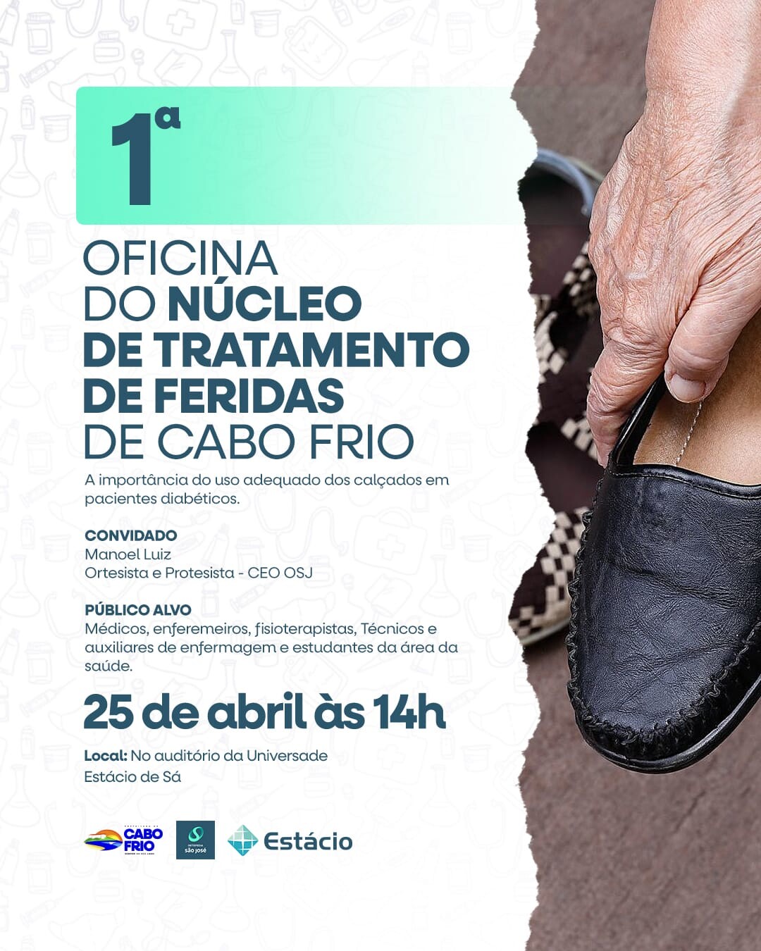 Pessoas acometidas pela Diabetes costumam ter que redobrar a atenção com os pés que, devido à perda da sensibilidade na região, tornam-se suscetíveis a machucados, infecções e, em casos extremos, a amputações. Pensando nesses cuidados, o Núcleo de Tratamento de Feridas do município promoverá, no próximo dia 25 de abril, duas oficinas sobre o tema: “A importância do uso adequado dos calçados em pacientes diabéticos”.