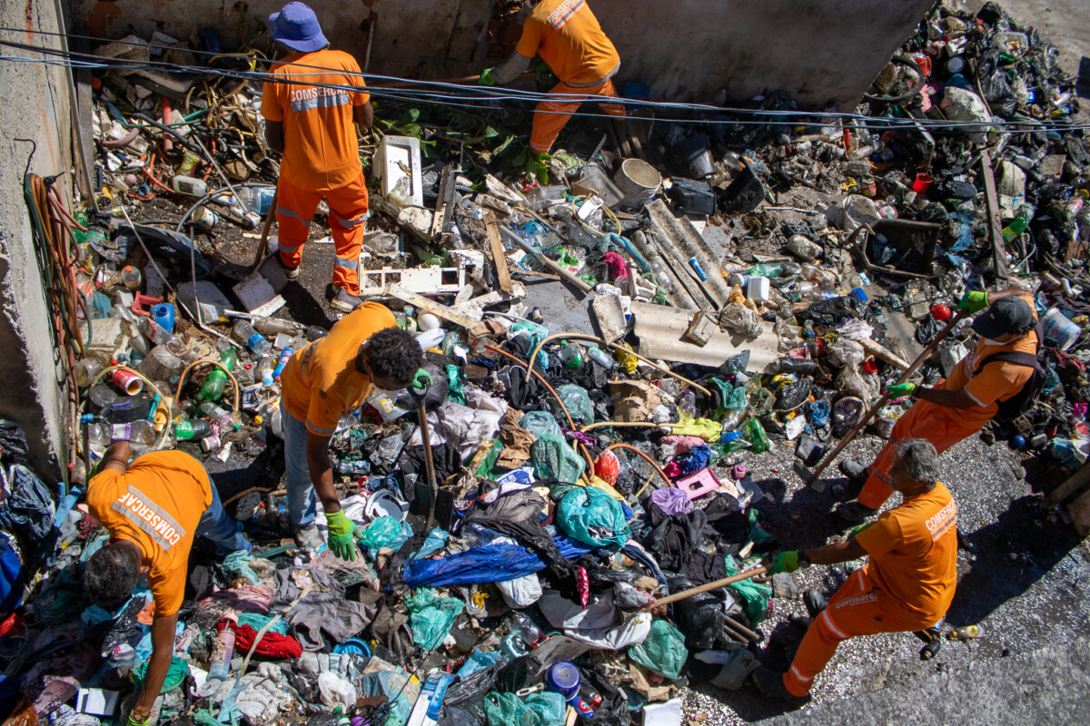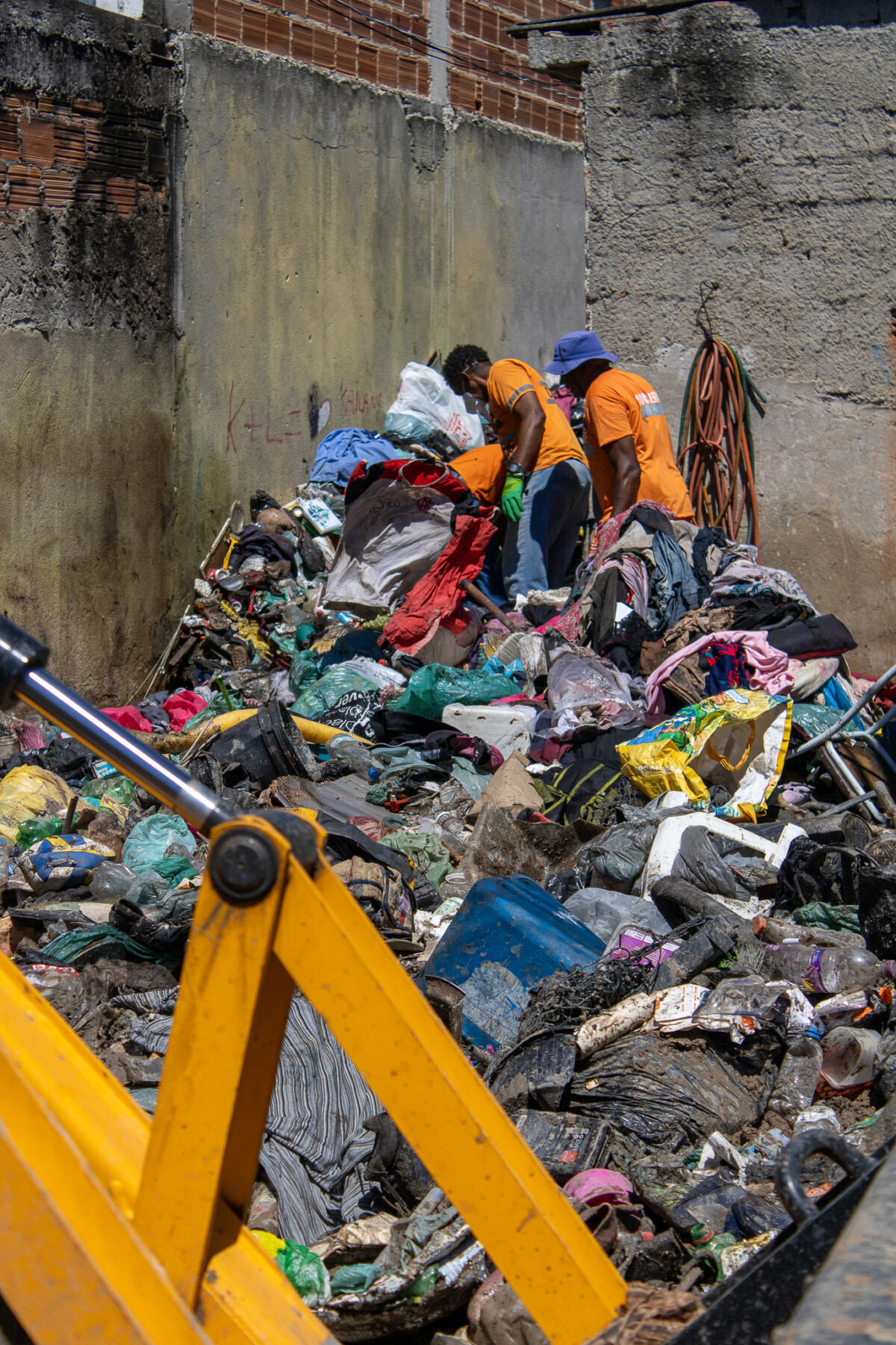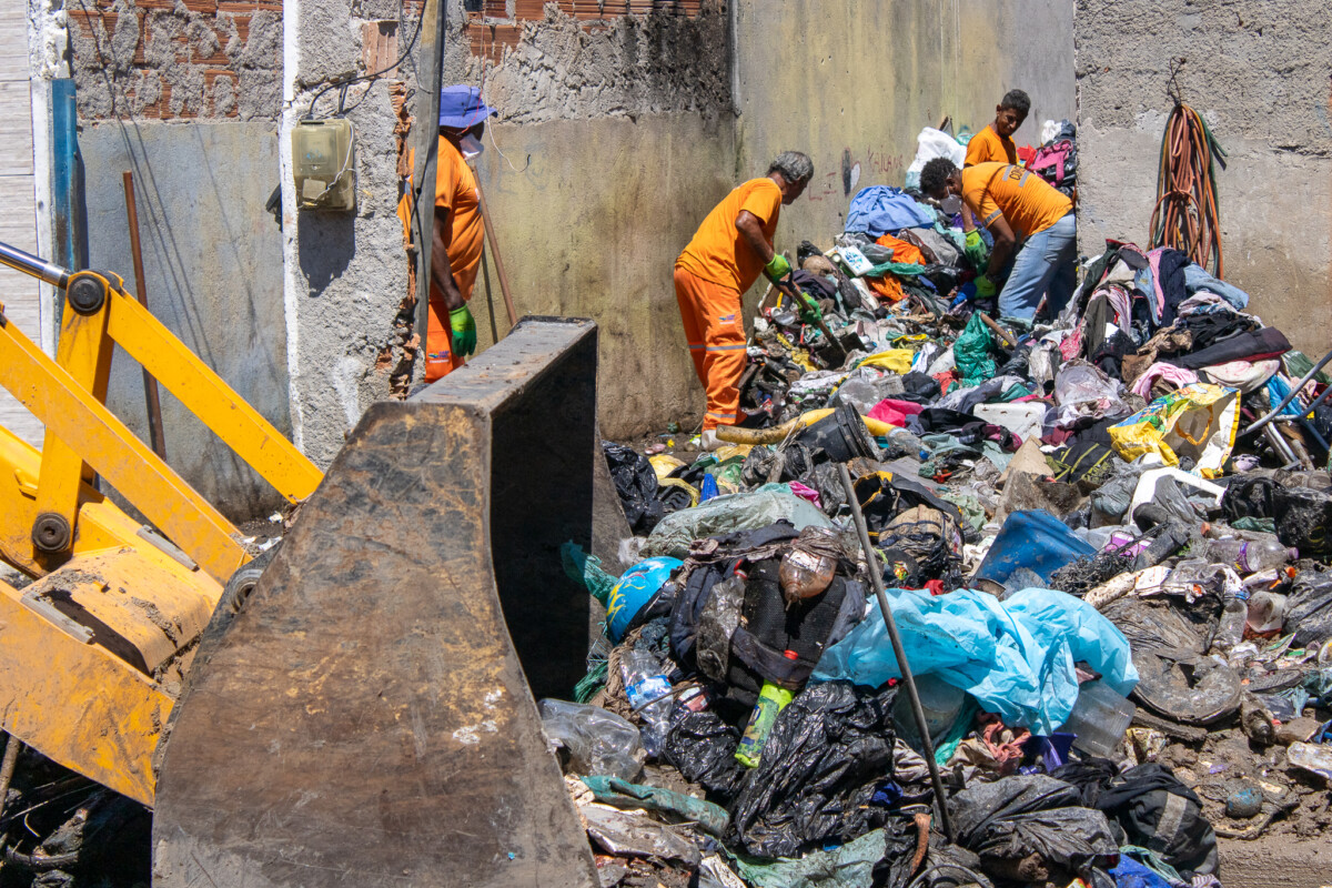 A ação já resultou na retirada de oito caminhões de entulho e lixo acumulado, com predominância de resíduos orgânicos, que estão sendo encaminhados ao aterro sanitário conforme as normas ambientais vigentes. O volume de material encontrado evidencia condições insalubres e riscos à saúde pública.