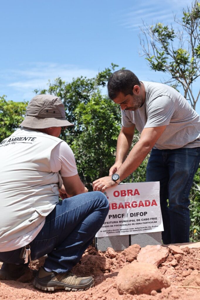 Uma operação realizada nesta quinta-feira (13) embargou loteamentos irregulares em Campos Novos e no Alto da Rasa, em Cabo Frio, resultando na paralisação de obras e na notificação de proprietários. A ação contou com a participação de equipes da Secretaria de Meio Ambiente, Saneamento e Clima, da Unidade de Policiamento Ambiental (Upam), da Ronda Ostensiva Municipal (Romu), da Polícia Militar, da Secretaria de Obras e da Secretaria de Fundiária.