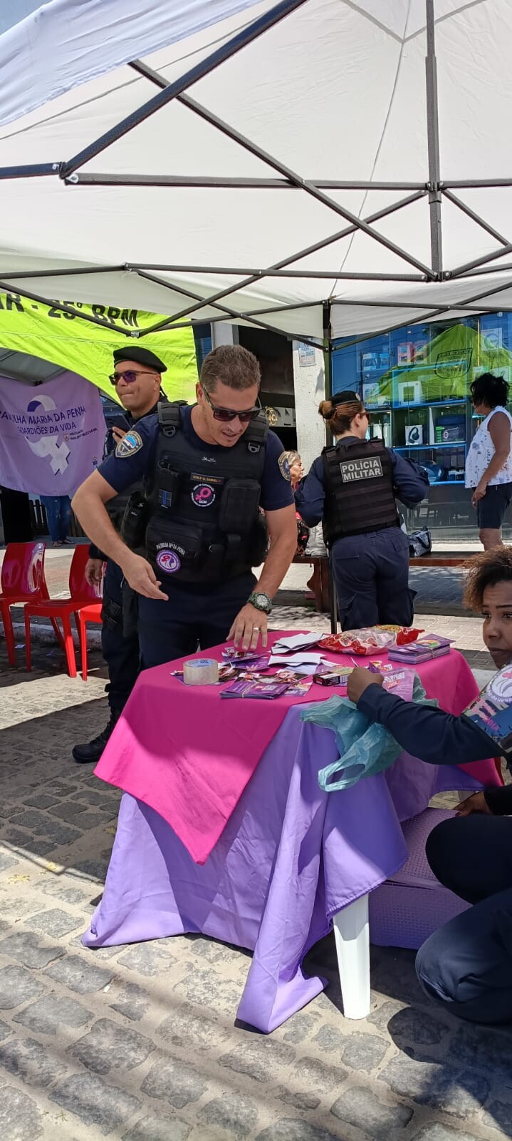 Também participaram agentes do Grupamento de Tamoios e do Centro Especializado de Atendimento à Mulher (Ceam) Rosa da Farinha. A ação integra a programação do mês da mulher e chama a atenção para a importância da informação no enfrentamento à violência.