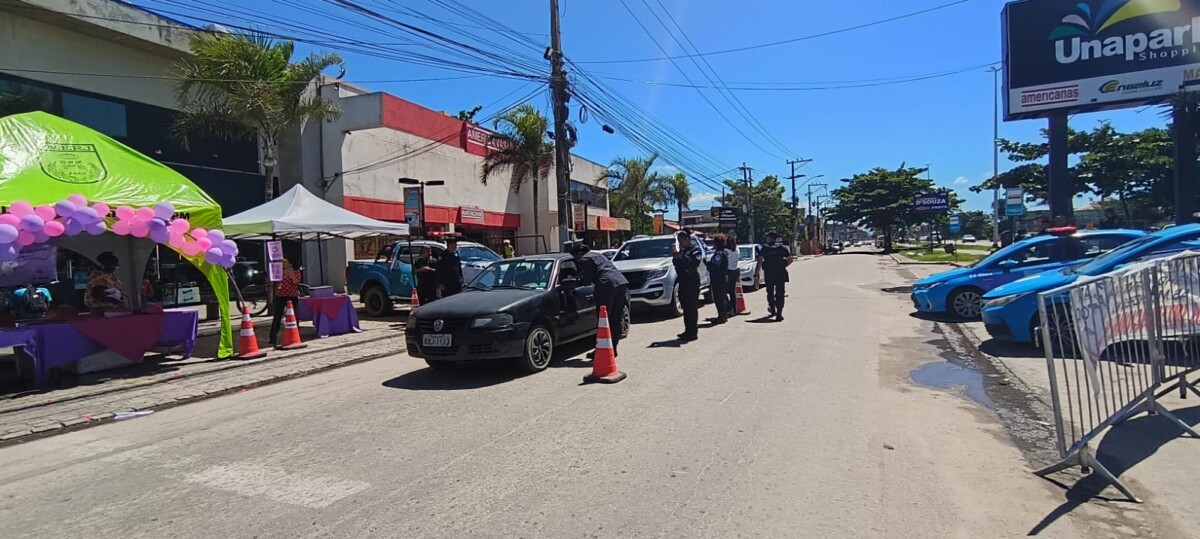A Patrulha Maria da Penha da Guarda Civil Municipal de Cabo Frio participou, na manhã desta terça-feira (24), da ação “Blitz Mulher”, realizada nas proximidades do Shopping Unapark, em Unamar (Tamoios). A atividade foi promovida pela Polícia Militar do Estado do Rio de Janeiro, por meio do programa Patrulha Maria da Penha – Guardiões da Vida, que convidou a equipe do município.