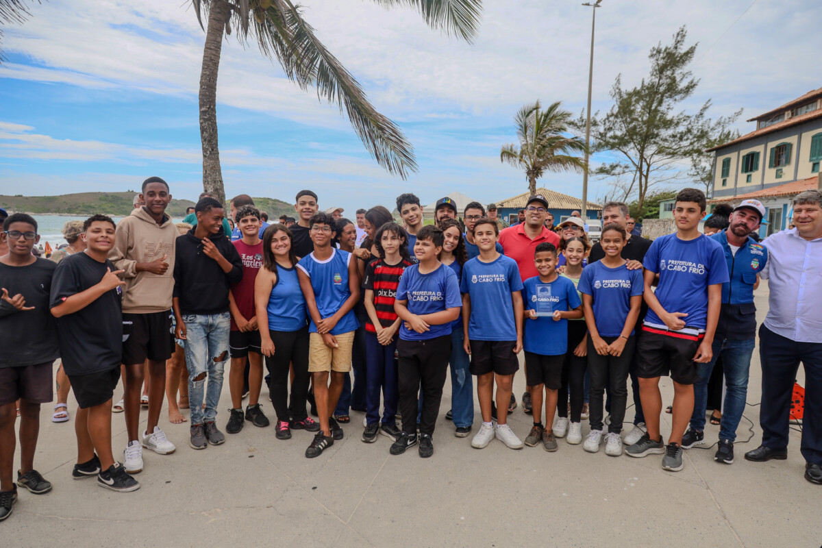 Um dos responsáveis pelo projeto, o diretor Jefferson Justino foi um dos homenageados do dia ao lado dos alunos. “O projeto começou em 2023, unindo educação e pesquisa. Levamos os alunos para mergulhos rasos, com suporte de um mergulhador experiente, e recolhemos redes, anzóis e outros materiais abandonados, e depois analisamos tudo no laboratório da escola. É uma forma de conscientizar sobre a pesca responsável, já que a atividade pesqueira ainda é, hoje, muito presente na vida dos moradores e de muitas famílias dos nossos alunos aqui do Peró. E a gente fica muito feliz em saber que esse projeto rendeu para a nossa cidade um prêmio de relevância nacional”, disse.
