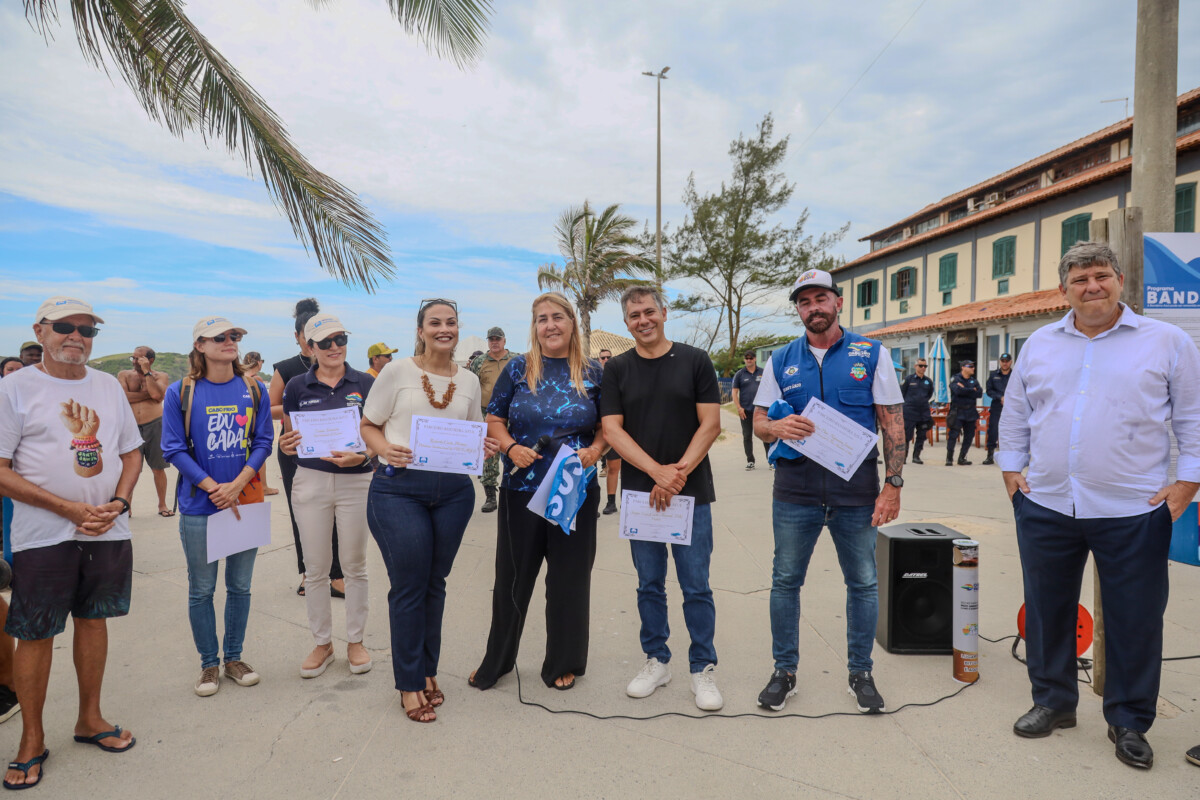 Participaram da cerimônia os secretários de Governo, Victor Escapini; de Turismo, Davi Barcelos; de Segurança e Ordem Pública, coronel Leandro Carvalho; de Serviços Públicos, Jeferson Vidal; o vereador Alfredo Gonçalves; representantes da Prolagos, do Instituto Escola do Mar (IEMAR), equipes municipais de Licenciamento e Fiscalização, da Guarda Marítima e Ambiental, da Superintendência de Pesca, da Companhia de Serviços Públicos de Cabo frio (Comsercaf) e integrantes do Comitê Gestor da Bandeira Azul, além de moradores e lideranças comunitárias.