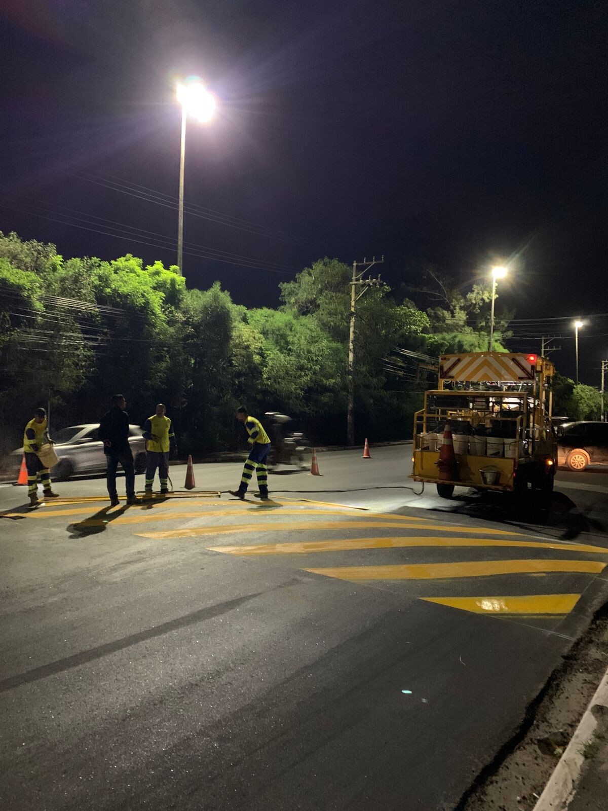 O trabalho começou na noite desta quarta-feira (8), com a sinalização das ondulações transversais (lombadas), que receberam pintura para aumentar a visibilidade dos redutores de velocidade. Nesta quinta-feira (9), os serviços seguem com a implantação das faixas de pedestres ao longo da via.