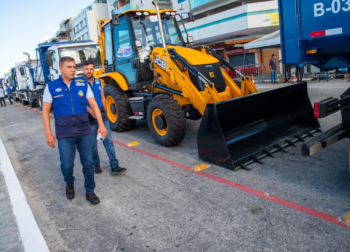 A Prefeitura de Cabo Frio apresentou, na manhã desta quinta-feira (1º), na orla da Praia do Forte, a nova frota de maquinários que irá reforçar os serviços de limpeza urbana no município. Ao todo, são 66 novos veículos, entre caminhões, tratores e furgões, além de 950 contêineres que serão distribuídos em diversos pontos da cidade. O objetivo é otimizar a coleta e evitar o descarte irregular de lixo nas calçadas.