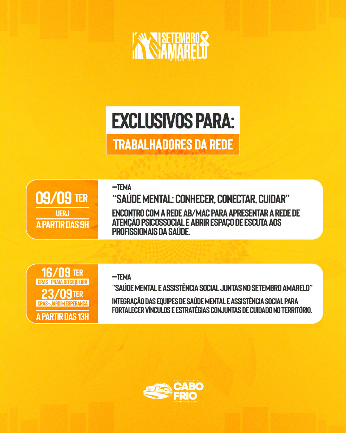 • Prefeitura de Cabo Frio inicia ações para promover o “Setembro Amarelo”