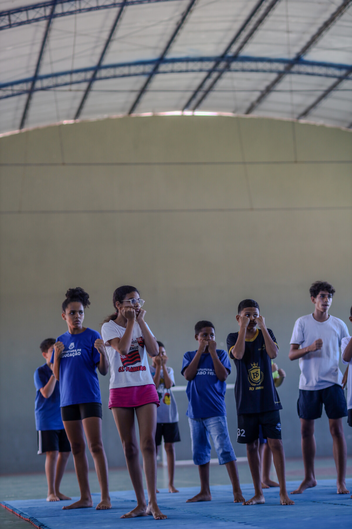 A Prefeitura de Cabo Frio, por meio da Secretaria de Educação, segue fortalecendo as ações de educação integral com o projeto “Esporte na Escola: Ampliação da Jornada Escolar”, que oferece aulas gratuitas de muay thai e jiu-jitsu. As atividades acontecem na Escola Municipal Professor Edilson Duarte, no Jardim Caiçara, no contraturno escolar, envolvendo a participação de crianças e adolescentes de cinco a 16 anos, estudantes da rede municipal.