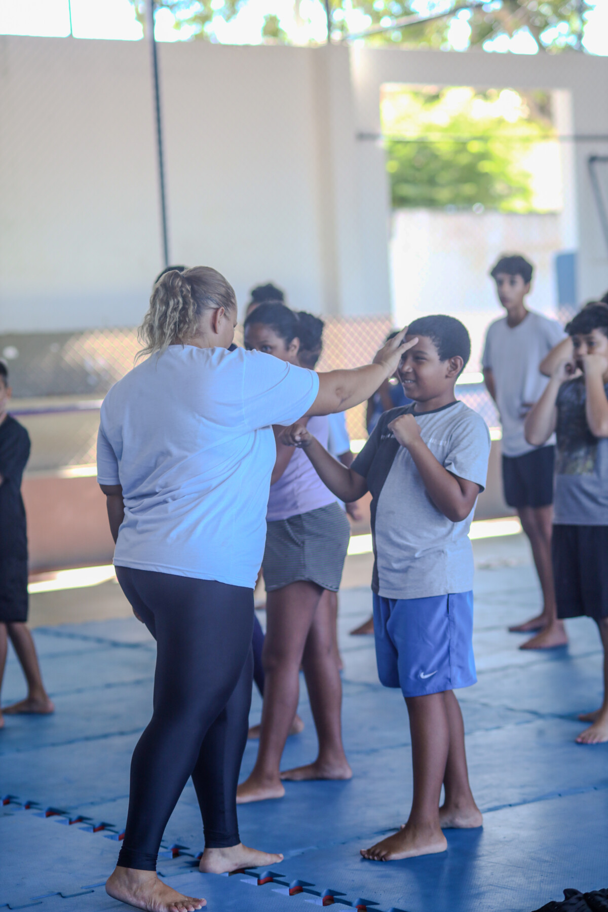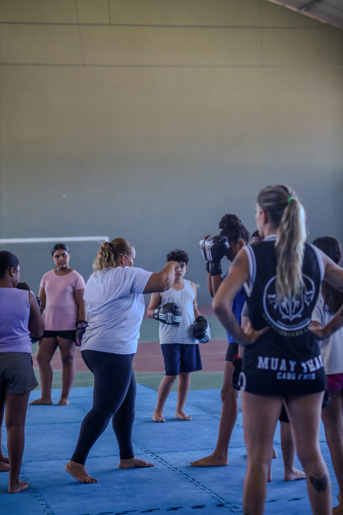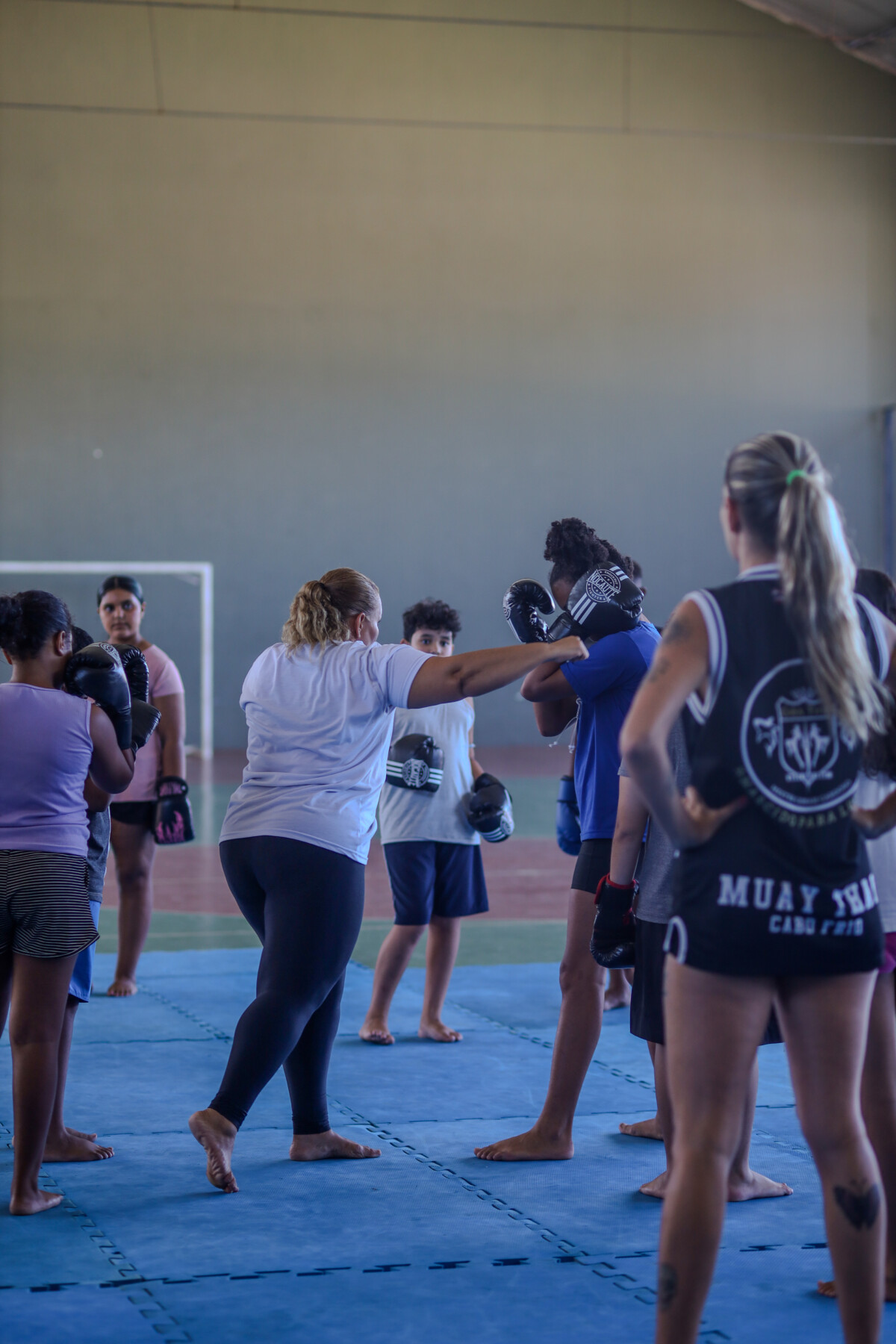 A estudante também ressaltou os benefícios da prática. “Eu gosto de aprender os golpes e de como o muay thai me faz sentir mais confiante. Através da luta, aprendemos também a respeitar e a ter disciplina”, finalizou Maria Eduarda, que é estudante do 8º ano da escola.