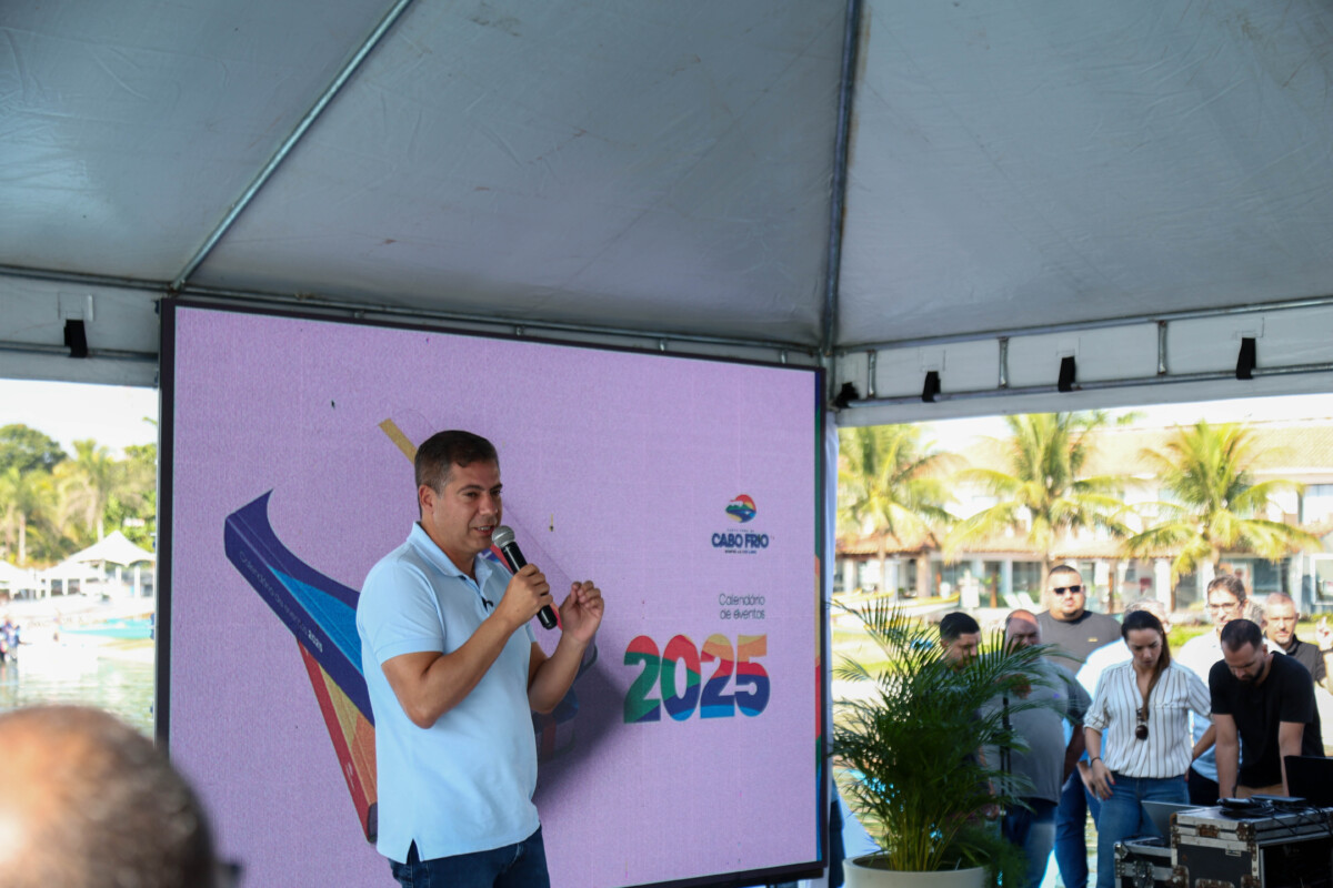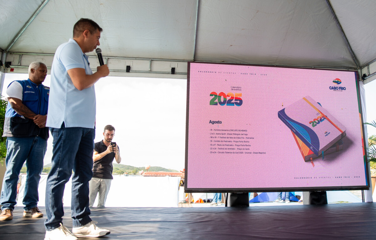 Resgatando tradições municipais e trazendo novidades em diversos segmentos culturais, gastronômicos e esportivos, a Prefeitura de Cabo Frio lançou na manhã dessa quinta-feira (22) o Calendário de Eventos de 2025, com realizações durante todo o segundo semestre do ano. O lançamento oficial foi apresentado pelo prefeito de Cabo Frio, Dr. Serginho, com a presença de secretários, vereadores, imprensa e diversos representantes do trade turístico cabo-friense.