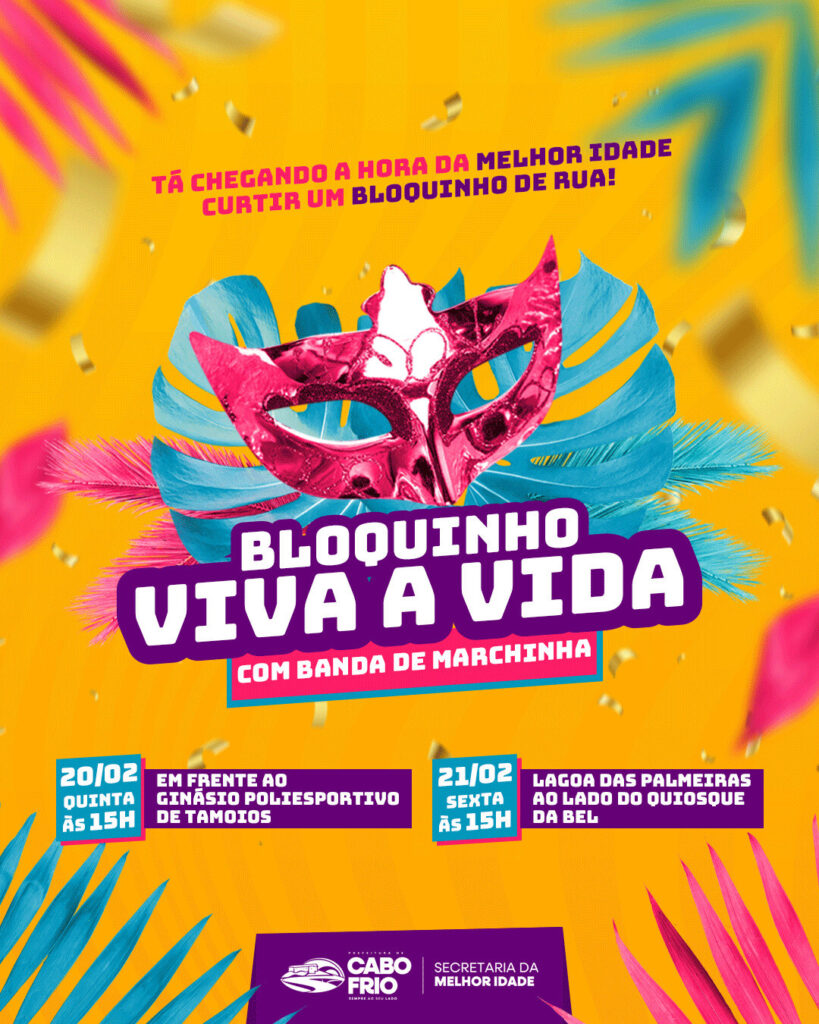A Prefeitura de Cabo Frio, por meio da Secretaria da Melhor Idade, convida os idosos da cidade para participarem de um animado pré-carnaval. O evento, chamado “Bloquinho Viva a Vida”, promete resgatar a alegria e as tradicionais marchinhas de carnaval em um ambiente de muita descontração e socialização.
