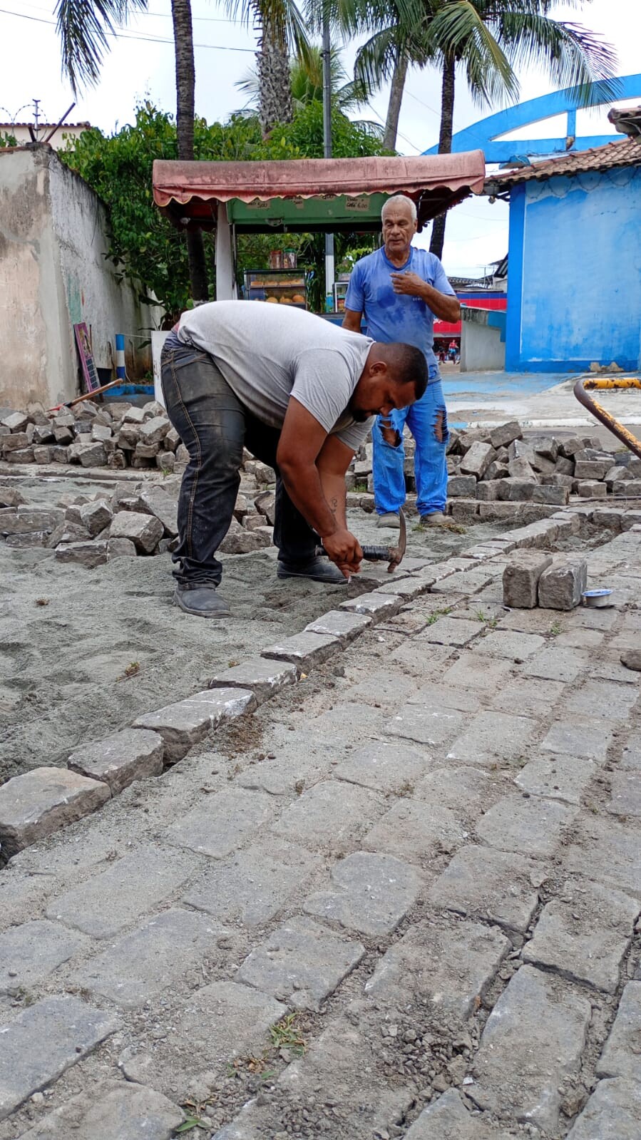 A ação contemplou o nivelamento do trecho afetado e a reposição de paralelos, após o registro de cedimento do solo que ocasionou o afundamento do pavimento. O problema comprometia a trafegabilidade e oferecia riscos à segurança de pedestres e condutores.