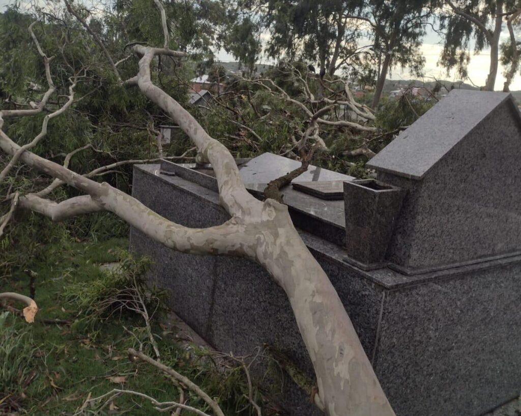 Enquanto isso, no Jardim dos Eucaliptos, além dos serviços de capina e limpeza, foram retiradas as árvores que estavam caídas sobre os jazigos e realizada a dedetização do espaço, entre outras ações. A quantidade de galhos, mato, lixo e entulho retirada encheu 10 caminhões.