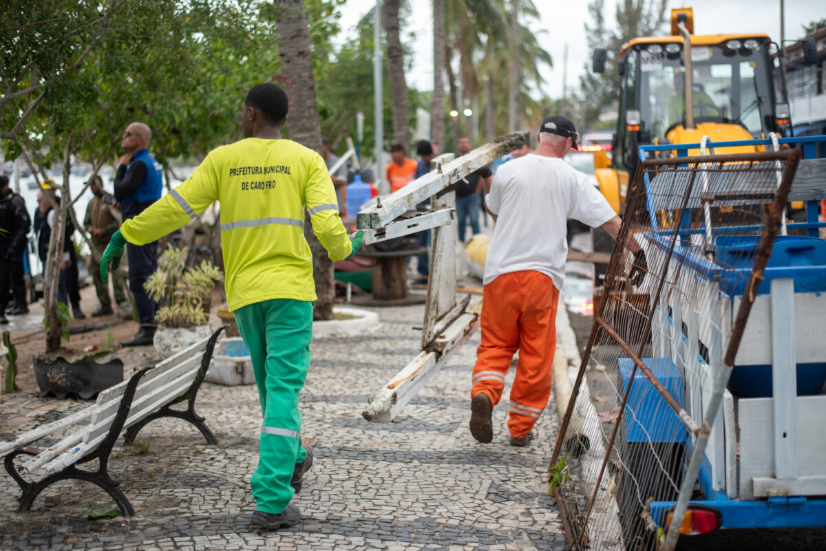 O primeiro ponto foi a orla do bairro Portinho, às margens do Canal Itajuru. No local, foram retirados um deck improvisado, gamelas, isopor, uma estrutura semelhante a uma caixa de fibra utilizada para armazenamento, três caiaques, um barco, além de garrafas plásticas, galões e um veículo notificado. A área será recuperada para o plantio de mangue. A ação contou com o acompanhamento do secretário de Segurança e Ordem Pública, coronel Leandro Carvalho.