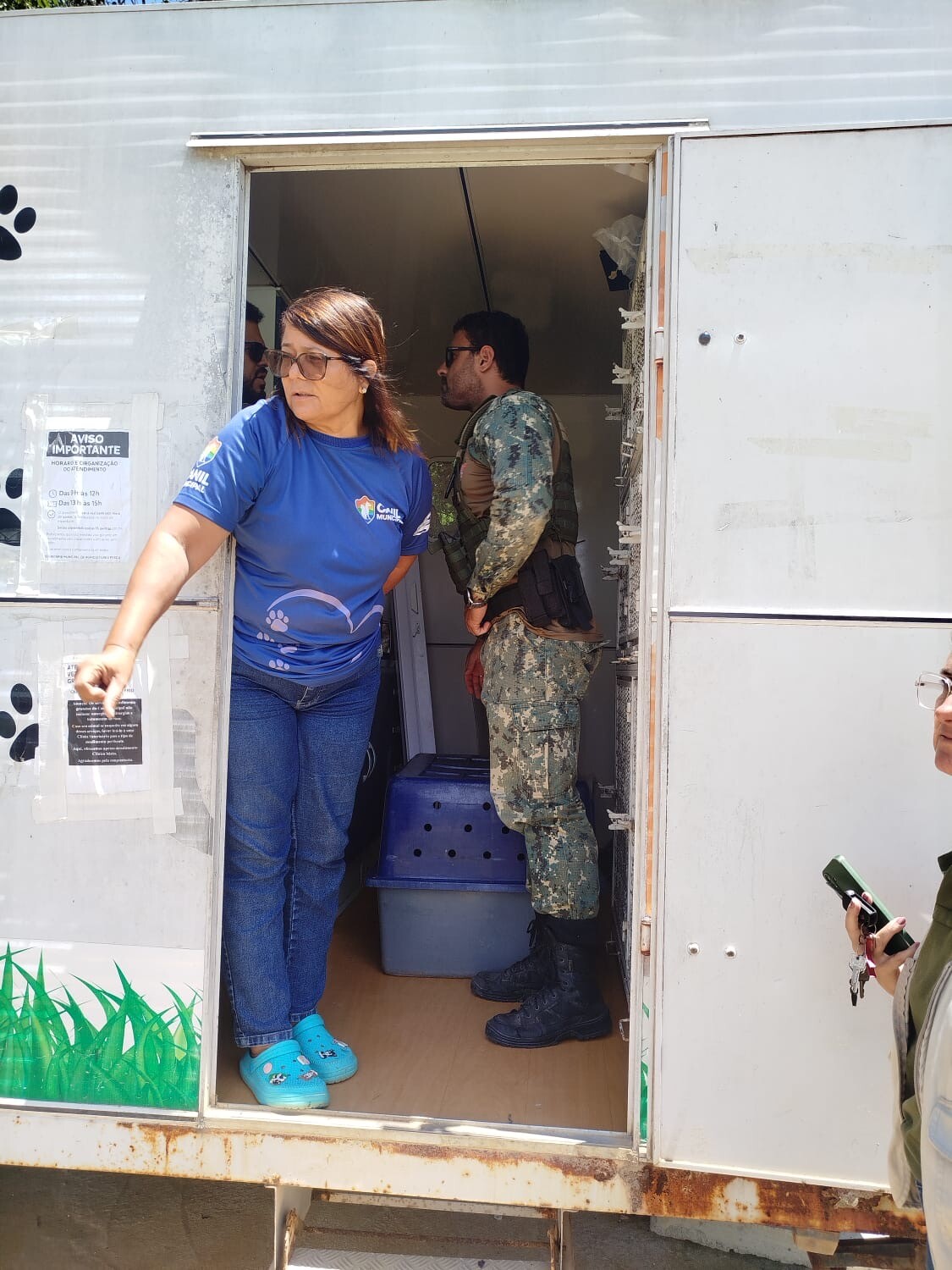 O primeiro caso ocorreu no bairro Jardim Esperança, onde um cão foi localizado dentro do CIEP da região. A direção da unidade entrou em contato com a Superintendência de Proteção Animal após o animal buscar abrigo no local. As equipes realizaram o resgate com segurança e encaminharam o cão para atendimento veterinário oferecido pelo Canil Municipal.