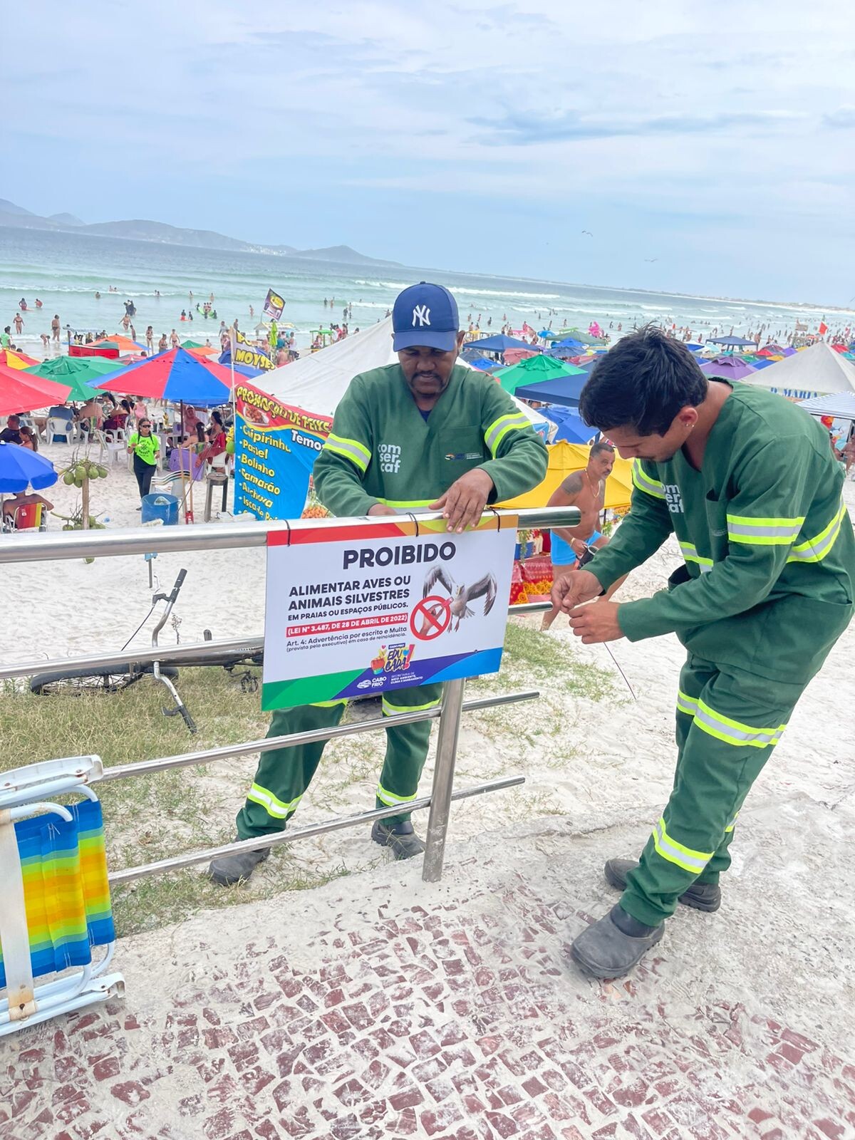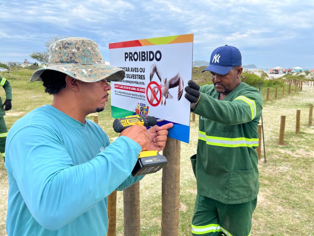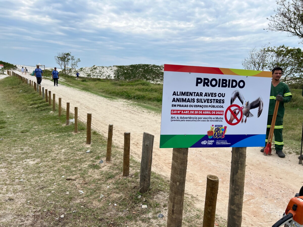 “É fundamental que a população e os visitantes colaborem e entendam os riscos dessa prática, tanto para as aves quanto para o equilíbrio ambiental. A intenção é que as famílias, turistas e prestadores de serviço em geral consigam visualizar claramente a proibição de alimentar esses animais, entendam as razões e conheçam as leis que fundamentam isso. Vamos instalar sinalização em todas as praias no município, começando pela orla da Praia do Forte, Palmeiras, Peró, Conchas e também em Tamoios, nas entradas das praias, para que o alerta fique visível nos acessos”, destacou o secretário de Meio Ambiente, Clima e Saneamento, Jailton Nogueira.